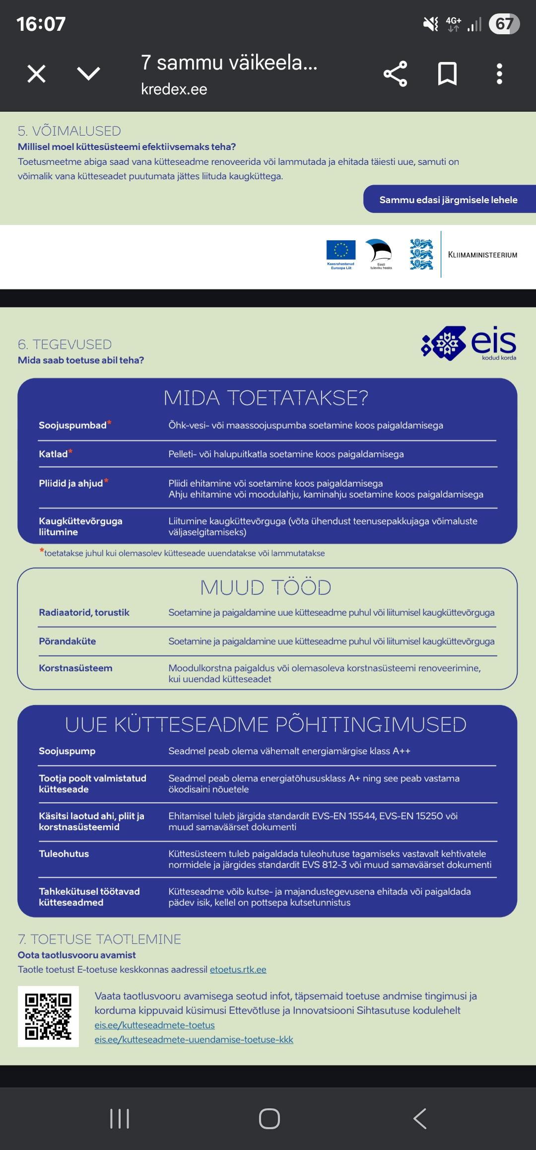 Kuna plaanin taotleda KredExi toetust, peab süsteem vastama nende tingimustele.