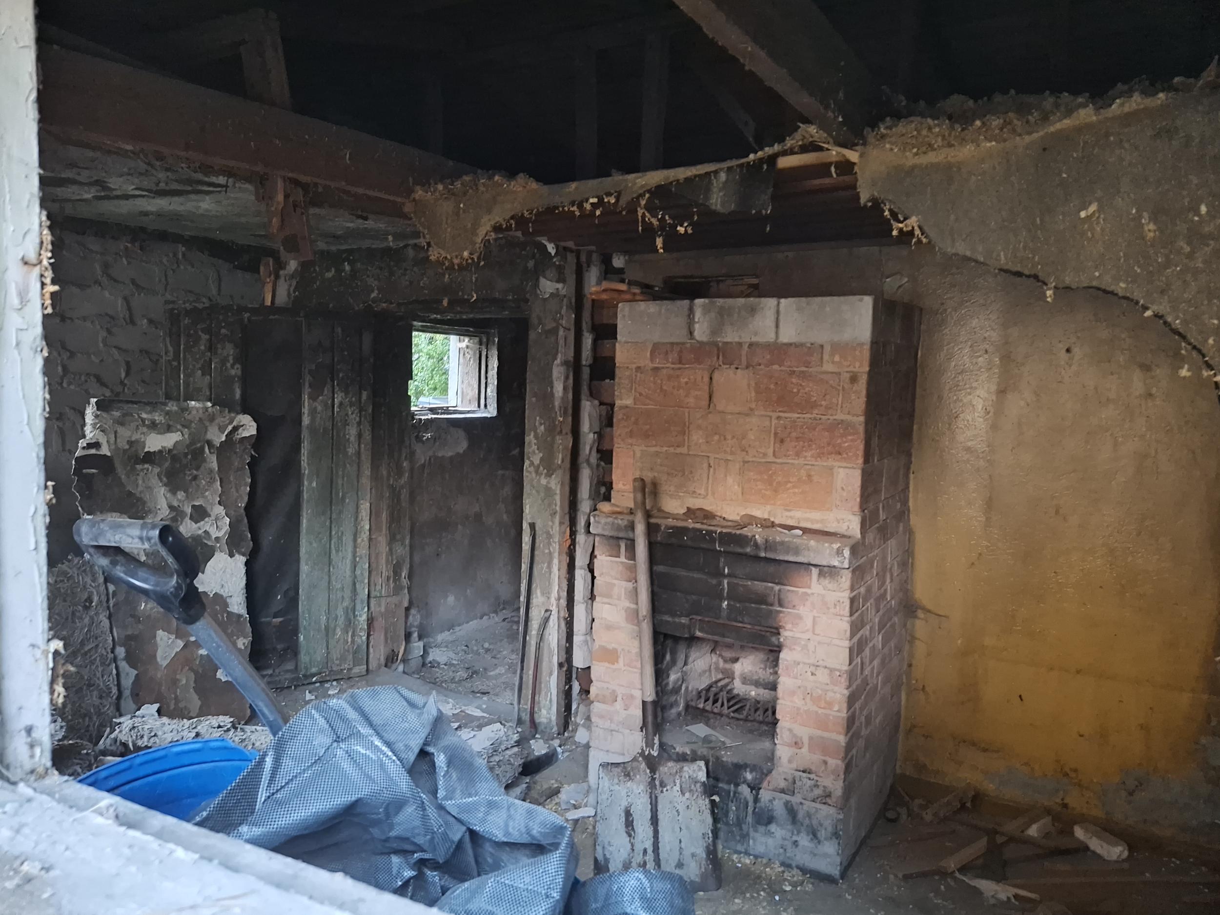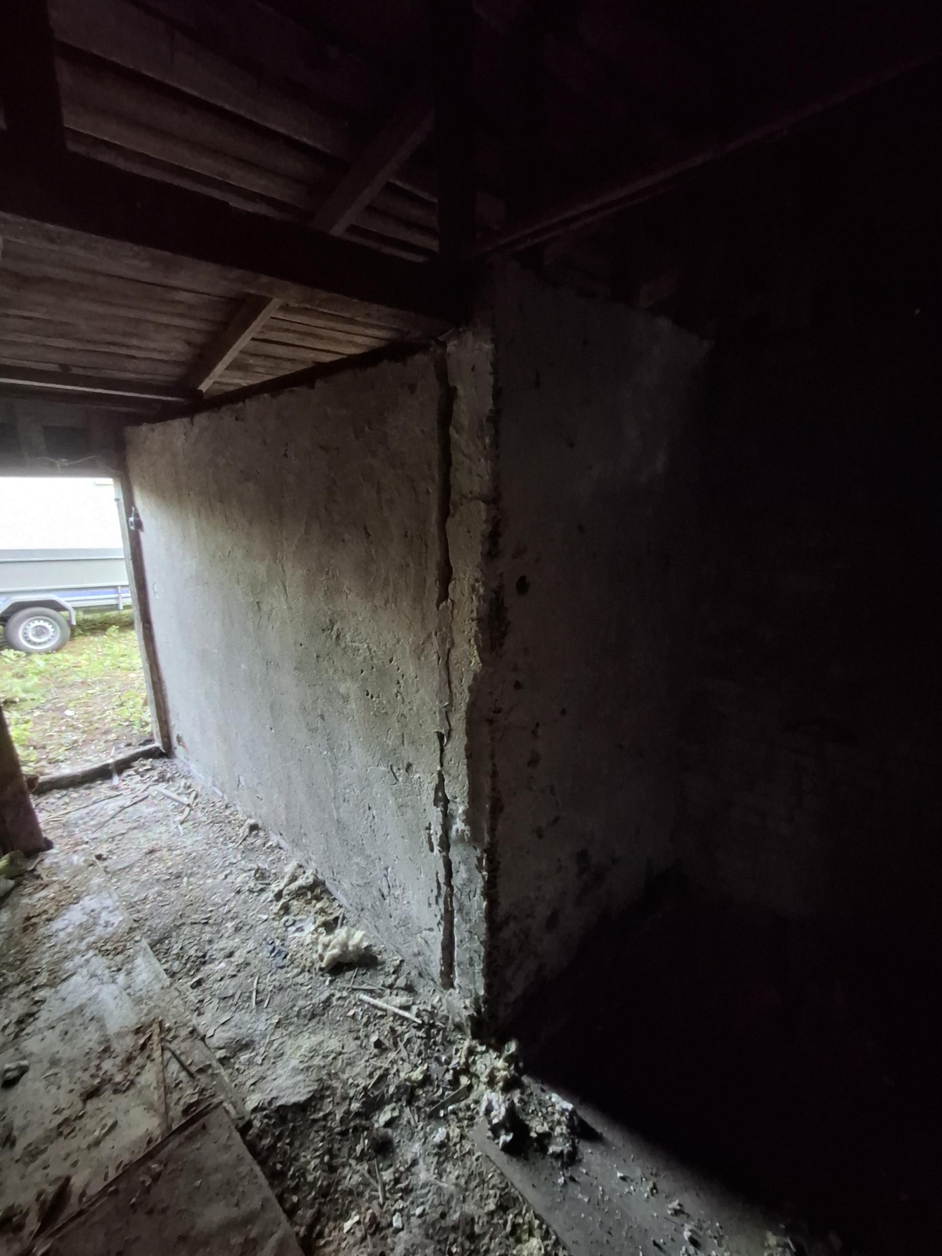 Hoone konstruktsioon - kivivooder ja saepurutäitega (paksus 10 cm) puitsõrestiksein. Saepuru täide on veel alles ca veerandi seinte ja vahelae osas (ülejäänud on ära lammutatud ja utiliseeritud). Tööde algus esimesel võimalusel.