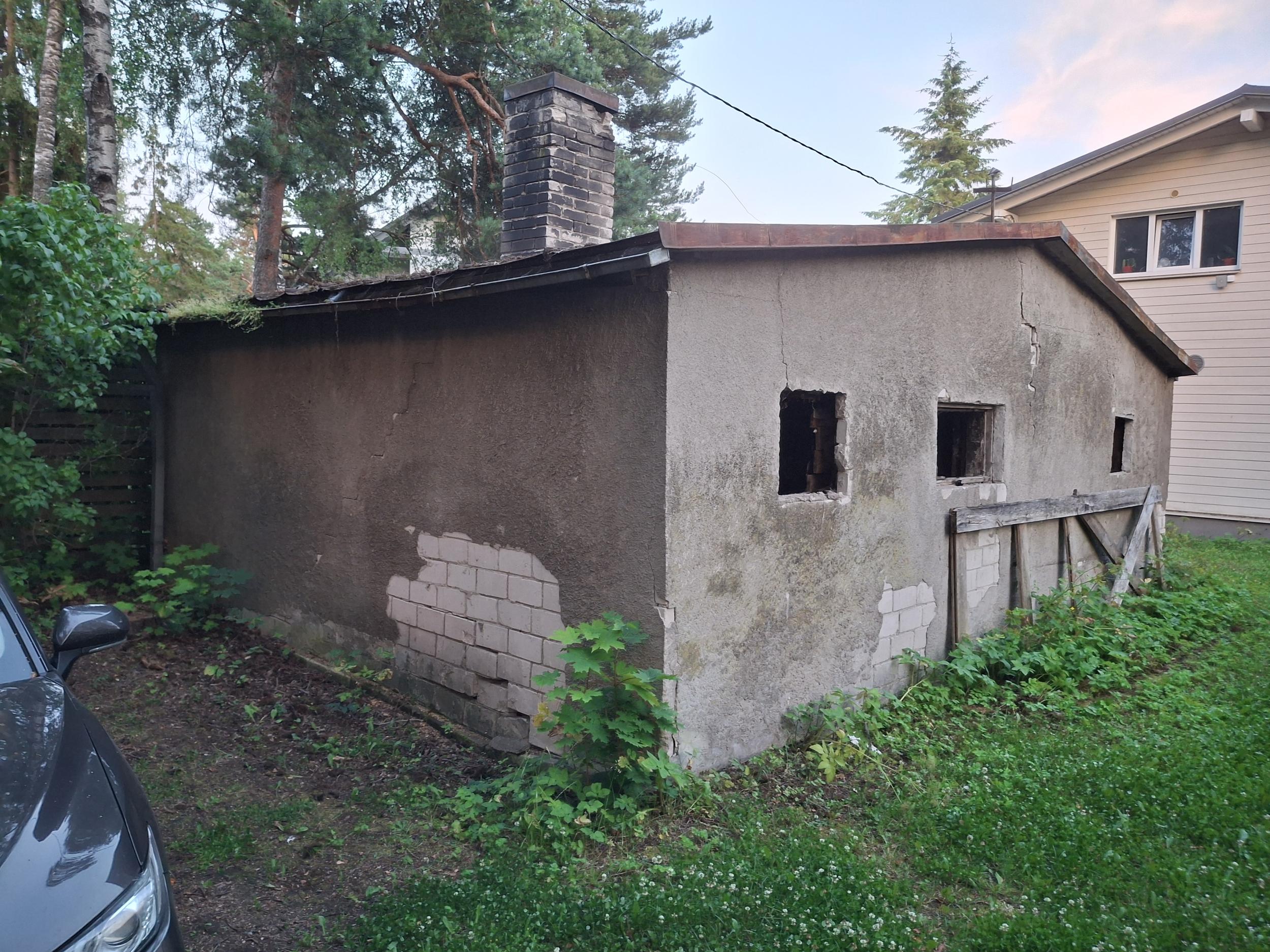 Töövõtjal tuleb lammutada kõrvalhoone mõõtudega 5,85X6,85 m (ca 40m2) ja lammutuspraht nõuetekohaselt utiliseerida (st tööde lõppedes tuleb esitada tõend, et jäätmed on üleantud vastavat luba omavale jäätmekäitlejale). Ehitusteatis esitatud ja linnavalitsuse poolt tegevus lubatud.
