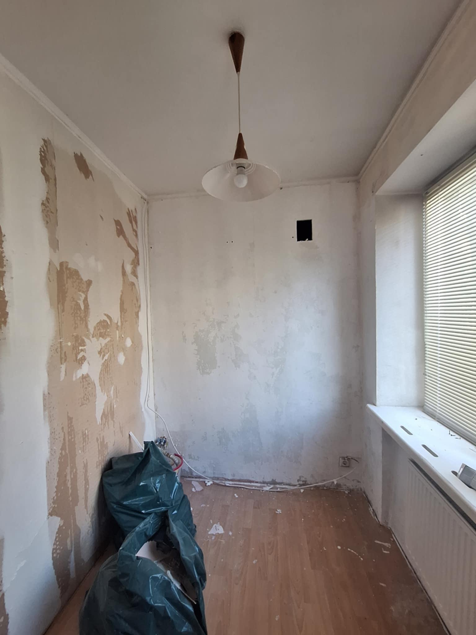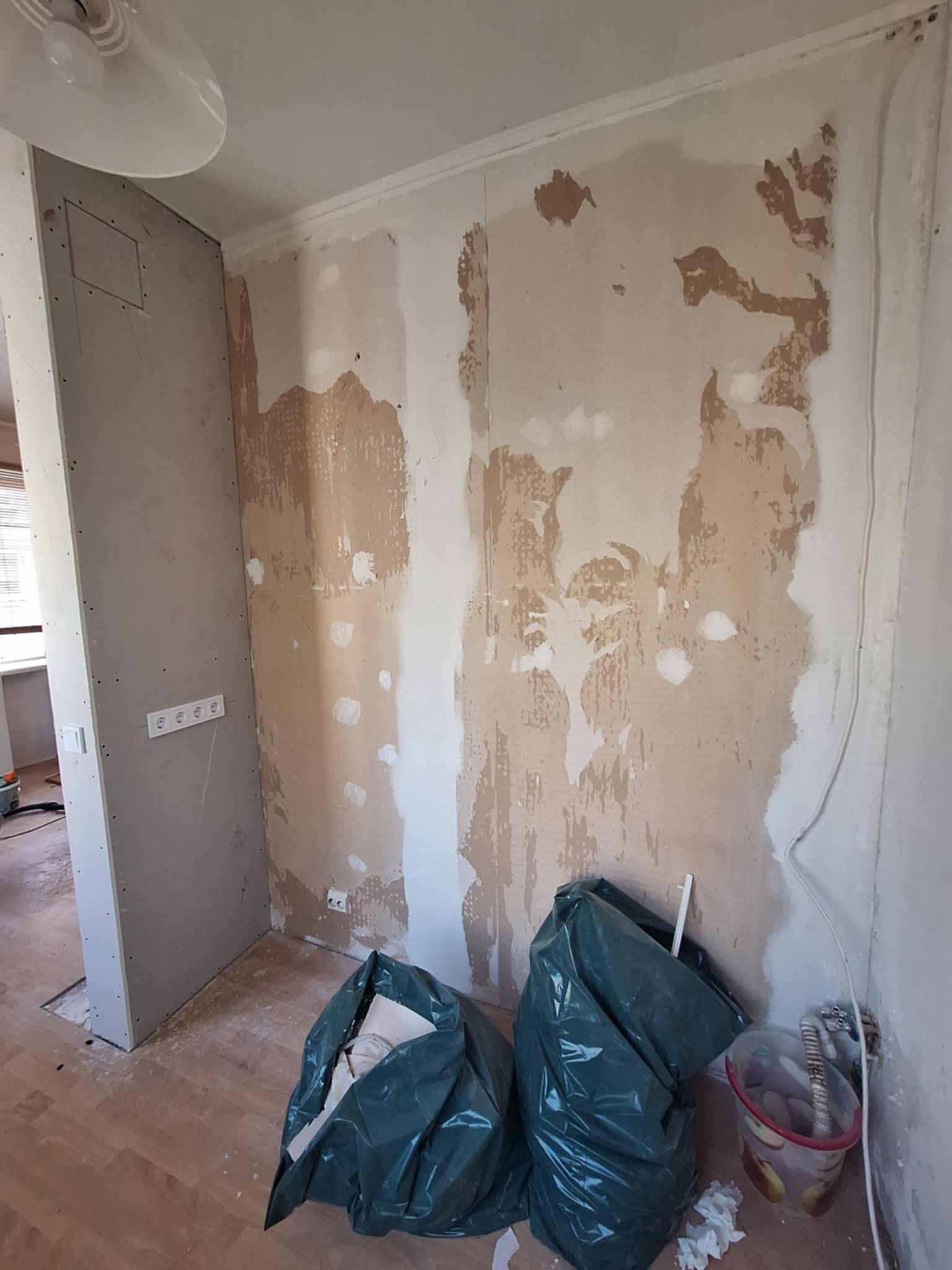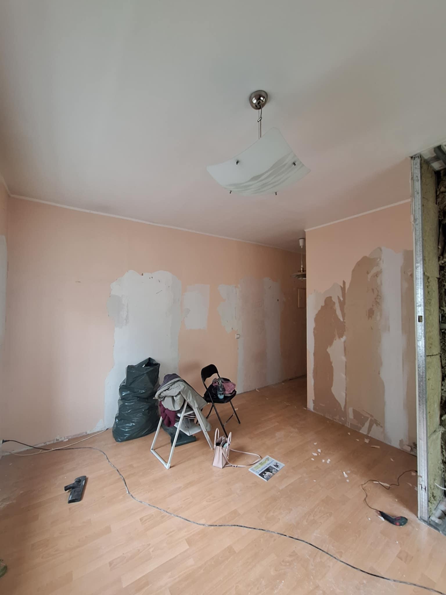 - Lae värvimine + ühe koha pahteldamine (vaata piltide pealt - enne asus ühes kohas sein, nüüd oleks vaja see ülejäänud laega ühtlaseks teha)