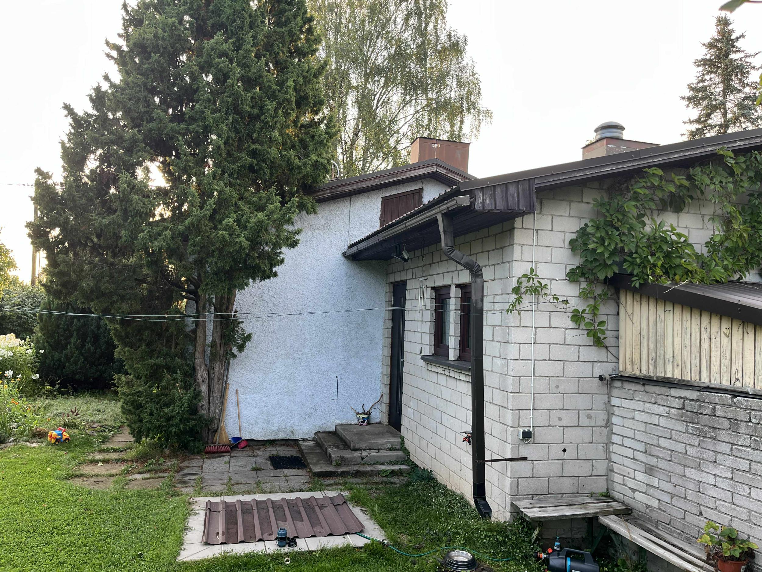 Kogu maja fassaad, sh garaaž, viimistleda vertikaalse voodrilauaga ja värvida. Sokli osa viimistleda sokliplaadiga ning soojustada. Maja koos välja ehitatava osaga ~105 m2 (köetav pind hetkel 75,7), ümbermõõt majal 61 m.