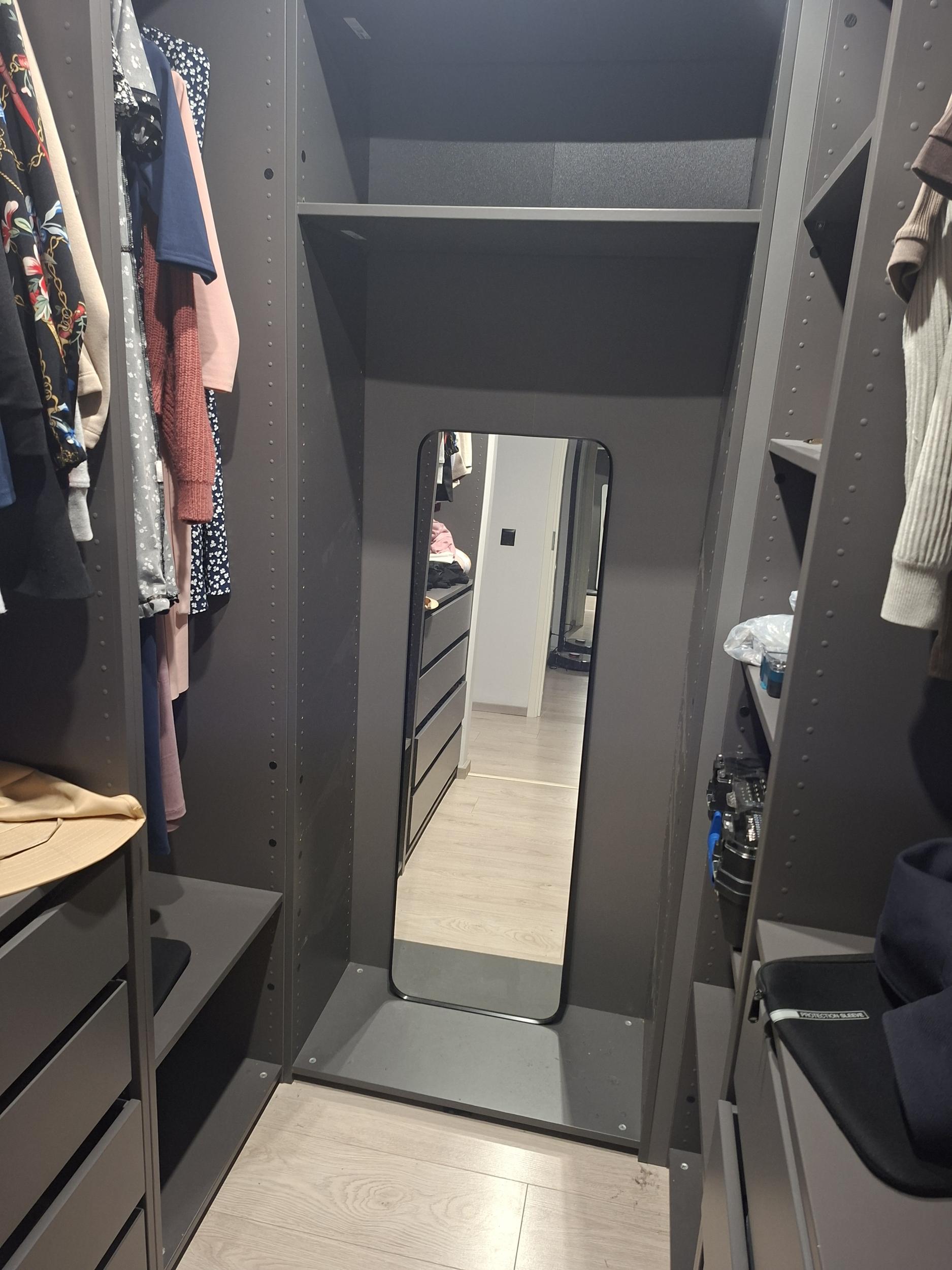 Praegune garderoob on mingi versioon Pax corner (vist?) wardrobe'ist (https://www.ikea.com/gb/en/p/pax-corner-wardrobe-dark-grey-s59590727/). Kui on võimalust siis äkki saab Ikeast lisavariandina see tellida ja siia paigaldada?