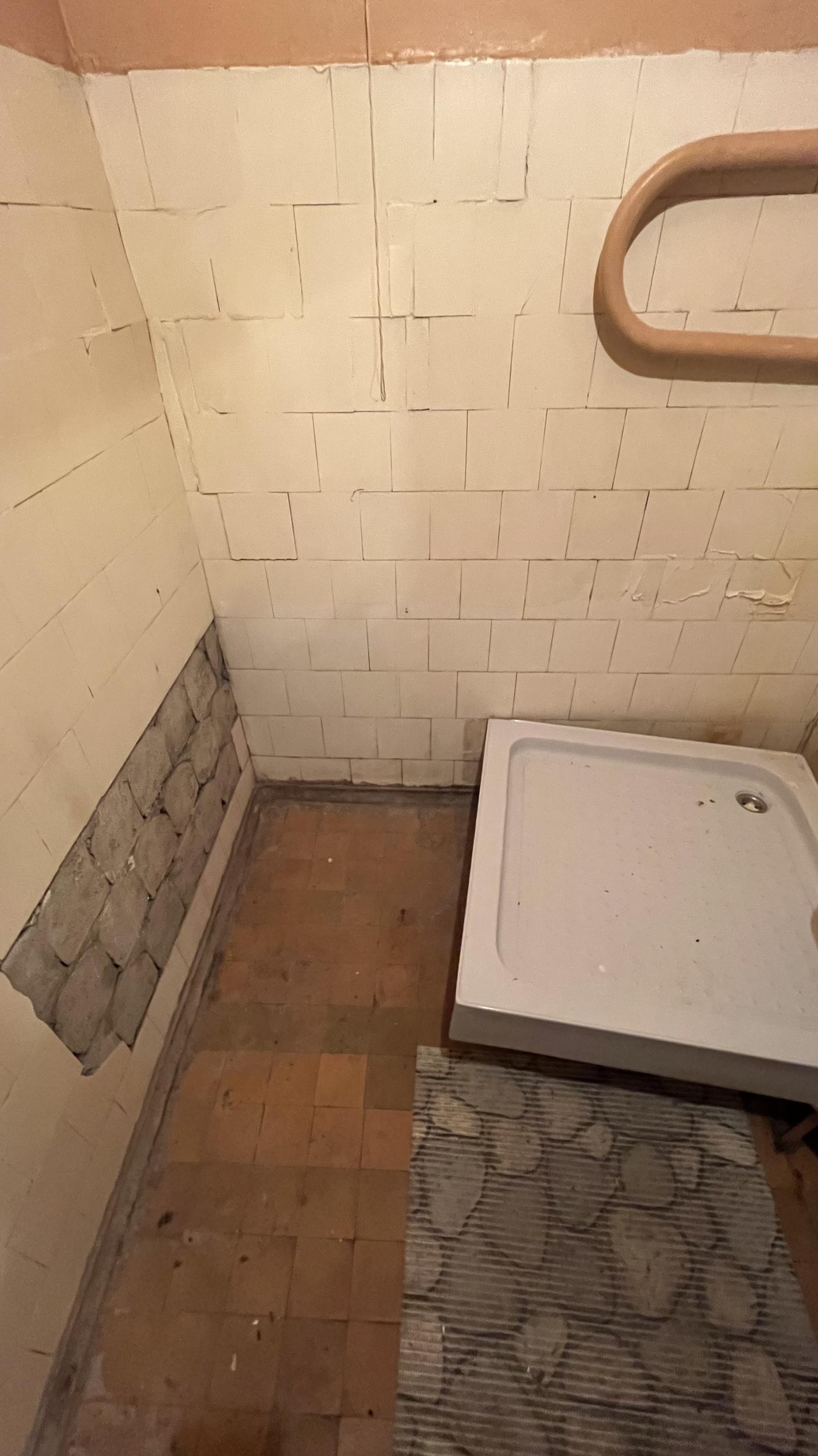 Algatuseks tuleks lõhkuda põrand, hinnata olukorda ning seejärel paigaldada uus põrand ja dušinurk. Võib kaaluda ka vannitoa ja selle kõrval asuva WC vahelise seina eemaldamist.