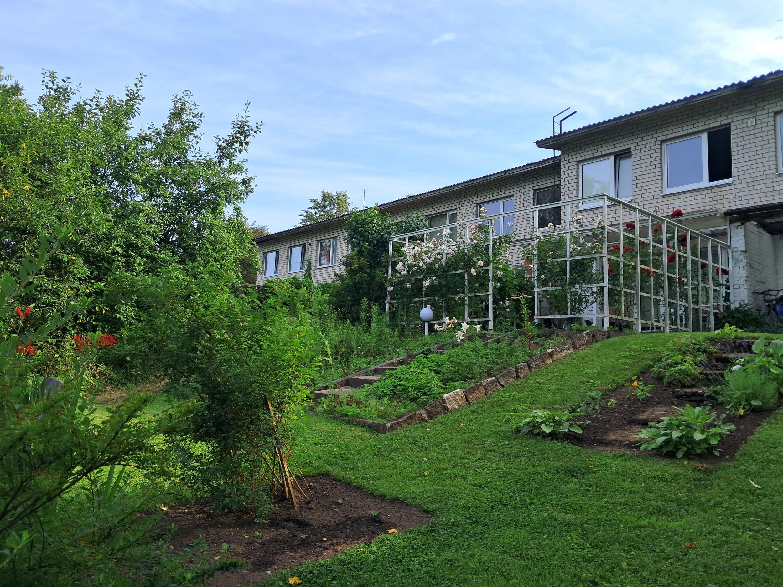 Ehitusel tuleb arvestada, et mõlemal majapoolel on korruste vahel varikatused ja maja taga varikatusest kaugemale ulatuvad terrassid, mõnel aed, mõnel lillevõred.