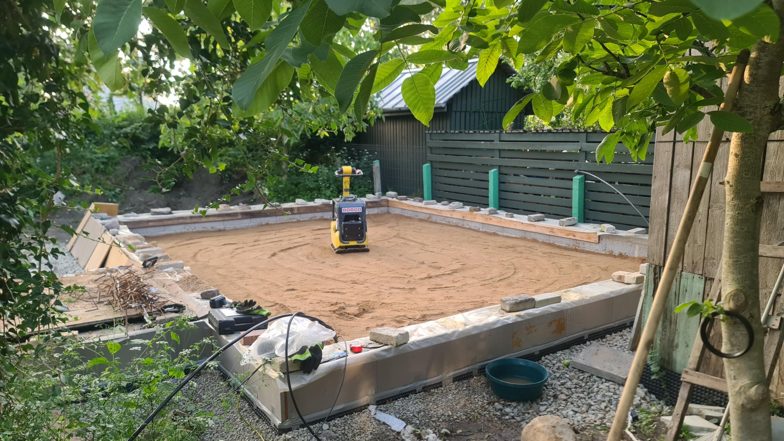 Valmis on vundament kuhu peale on valatud 8cm paksune 20cm laiune betoonvöö. Veetud on vesi, kanalisatsioon, ja elekter. Projekteerimistingumused on väljastatud.