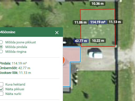 Aia sisest sillutise pinda tuleb ca 114m2 ja natuke veel aia tagant 33m2.