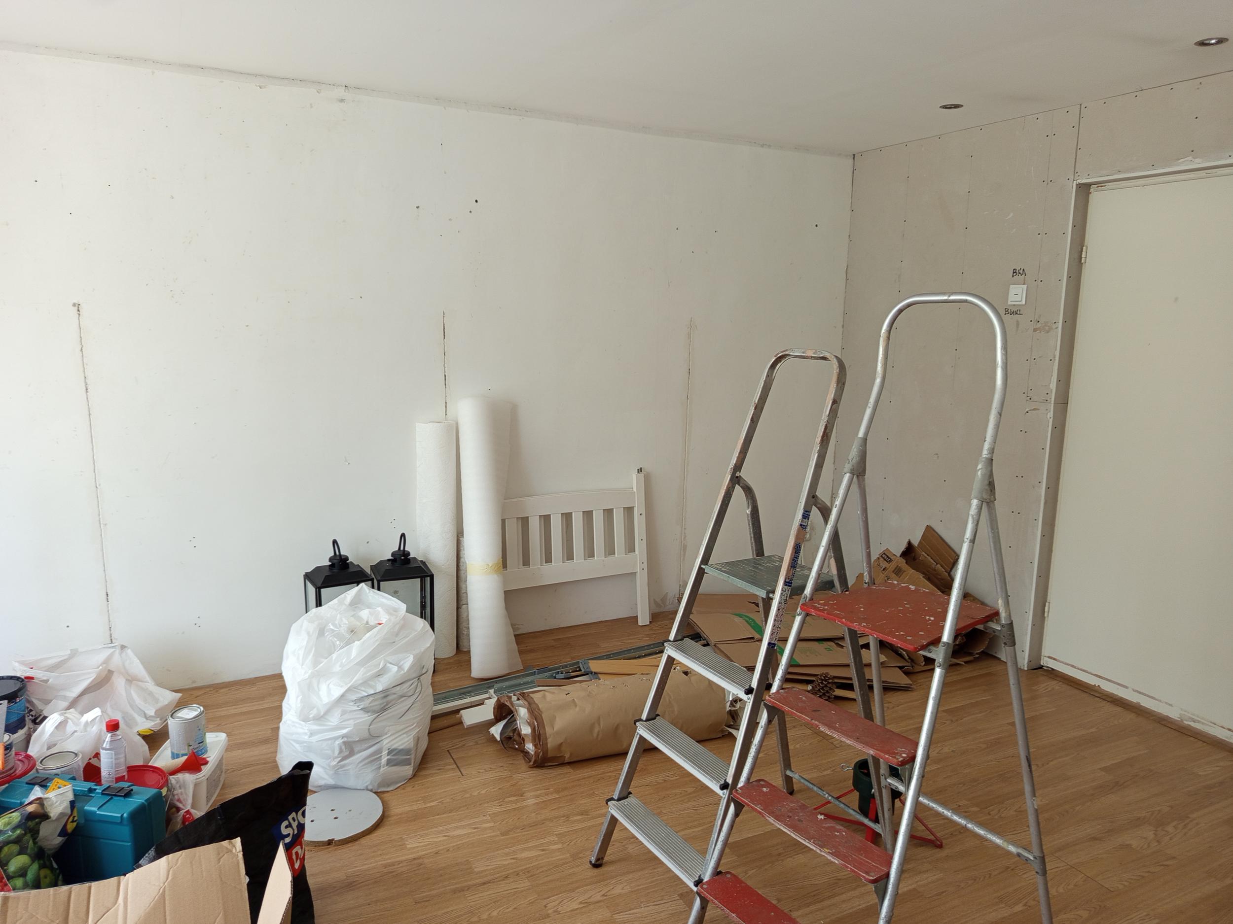 Kipsi vahetus kahel seinal ,uue panek, täis pahteldus seintel , lae pahteldus , lihvimine parketti panek. Akna põsed ja aknalaua pahteldus .