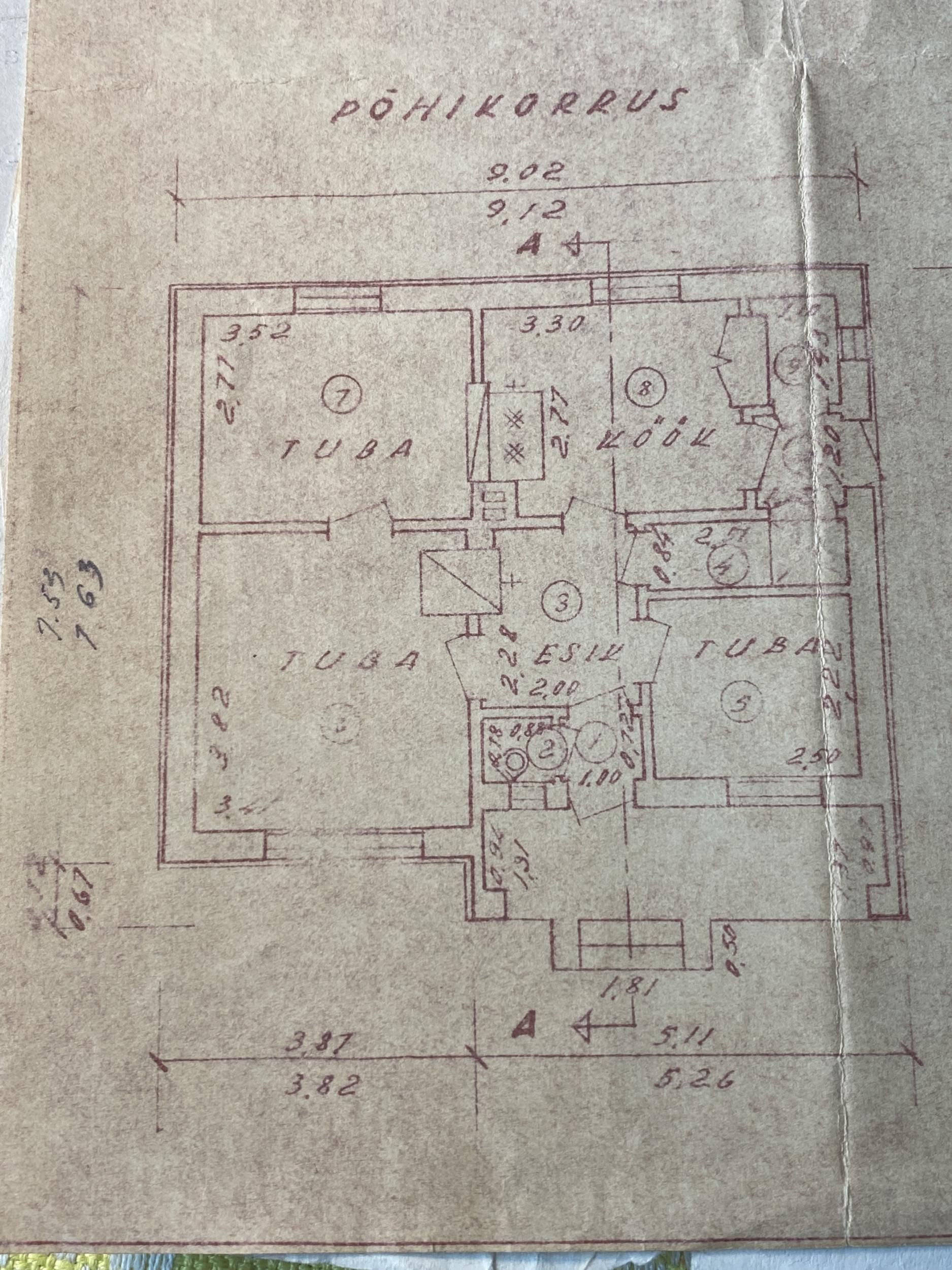 60.-datel ehitatud eramu vajab renoveerimist. Maja läheb üle maaküttele ja esmalt on vaja remontida ruumid nr 8, 9 ja 10. Ruumist 9 tuleb tehnoruum, kuid 8 ja 9 vaheseinaks on sinna sisse on ehitatud seinakapp, mis tuleb välja lõhkuda ja sein tervikuks teha . Köögi puidust põprand vajab renoveerimist (osa põrandalaudu vajab väljavahetamist), ruumide seinad lagi vajavad värvimist, väliuks soojustamist.