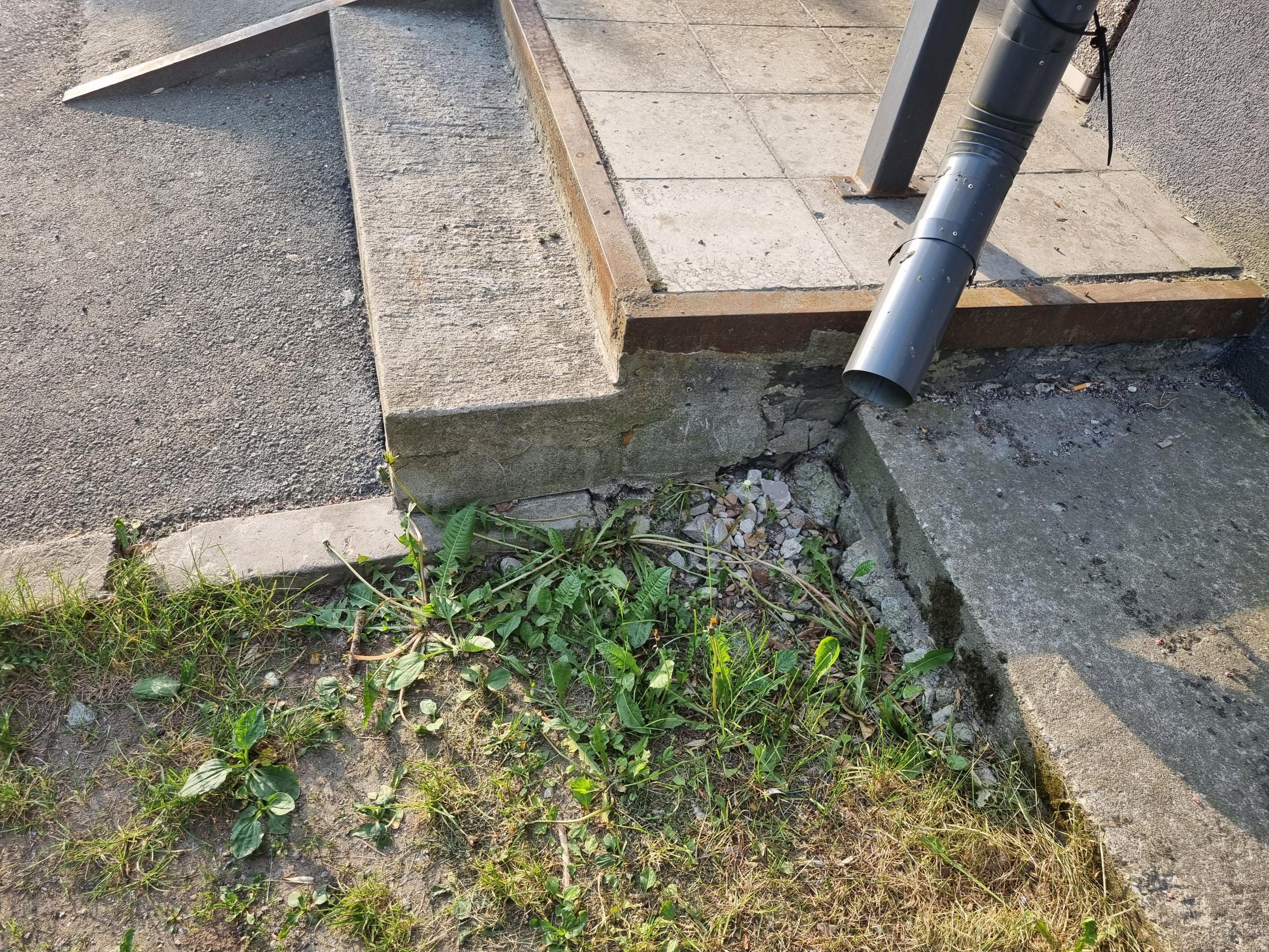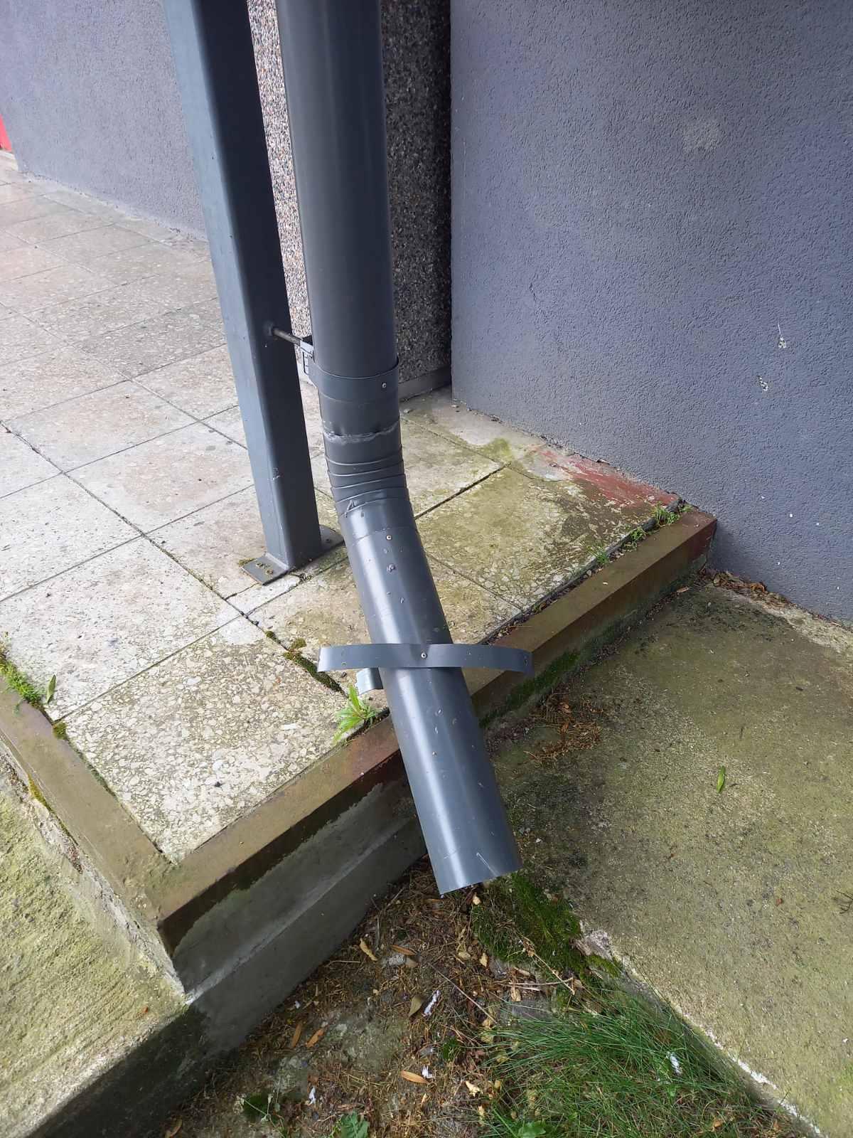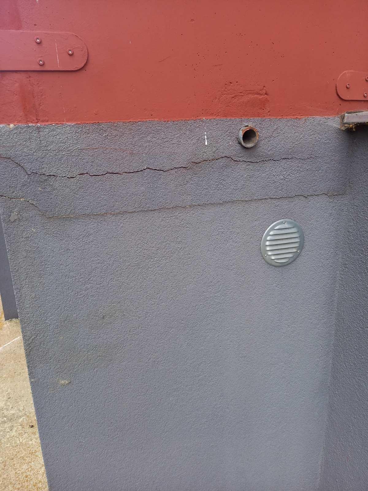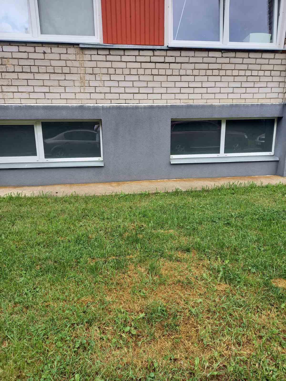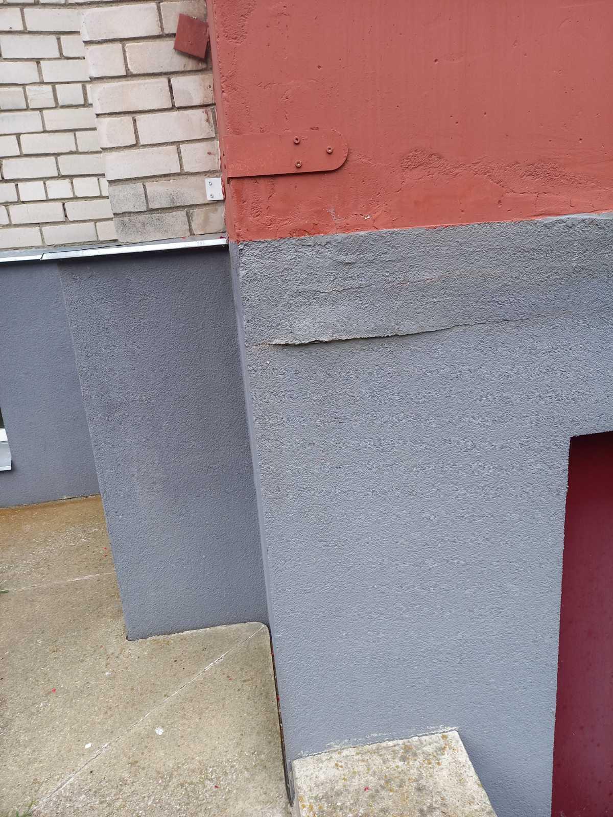 Survepesu käigus in saanud vigastada soklivärvi alumine osa. Vead tuleb parandada. Umbes 6 m tükk sokli karniisist on tuule poolet ära rebitud, Kannatanud plekk on alles, Tuleb vaadata kas paigaldada vana või tellida uus. Kindlustada ülejäänud karniis keemiliselt v'i klambritega. Trepikodade välikatused tuleb altpoolt maalritöödele allutada. Vihmaveetorud trepikodade juures tahavad korrastada, Puudub tsiviilne äravoolurenn.