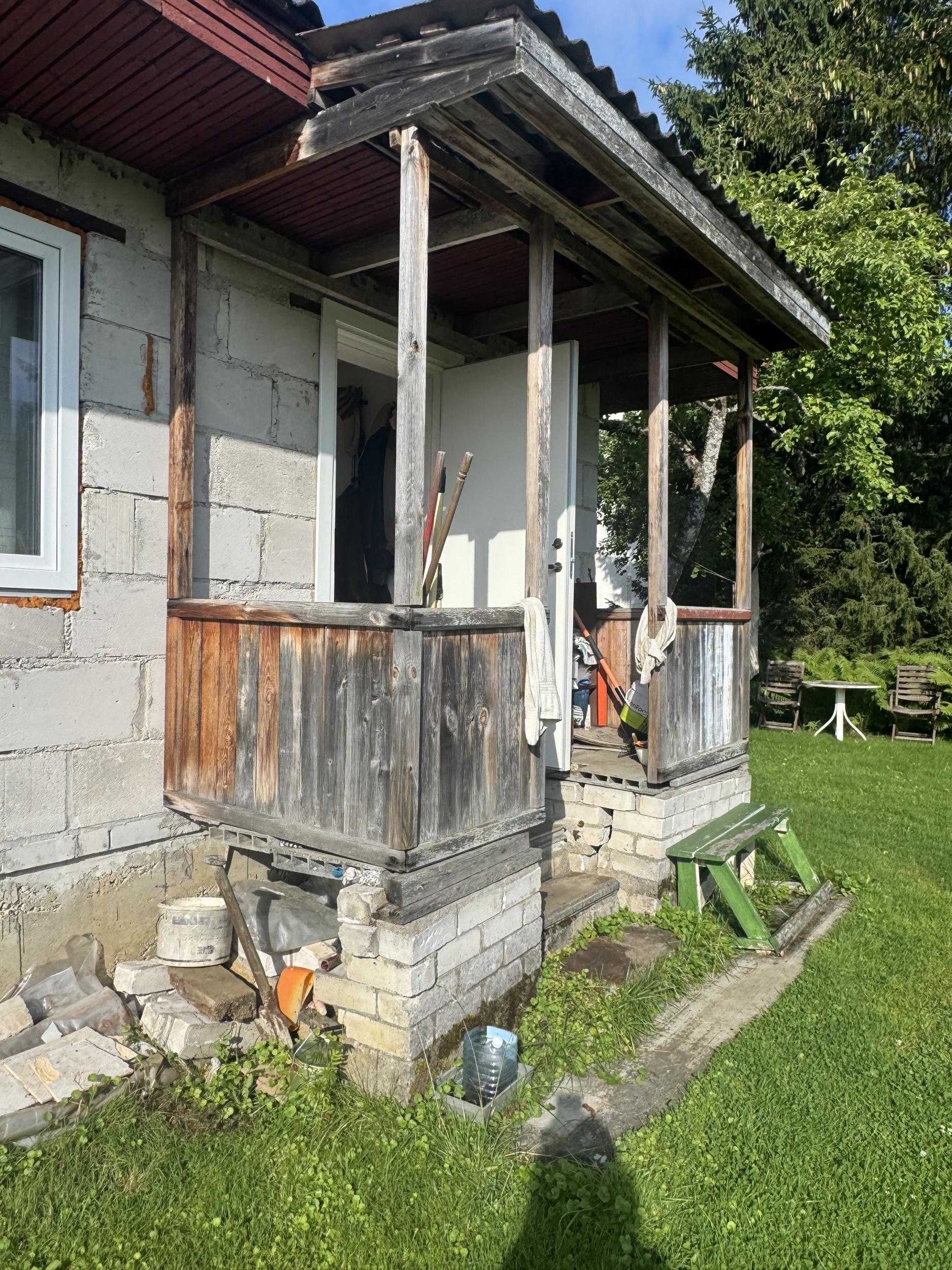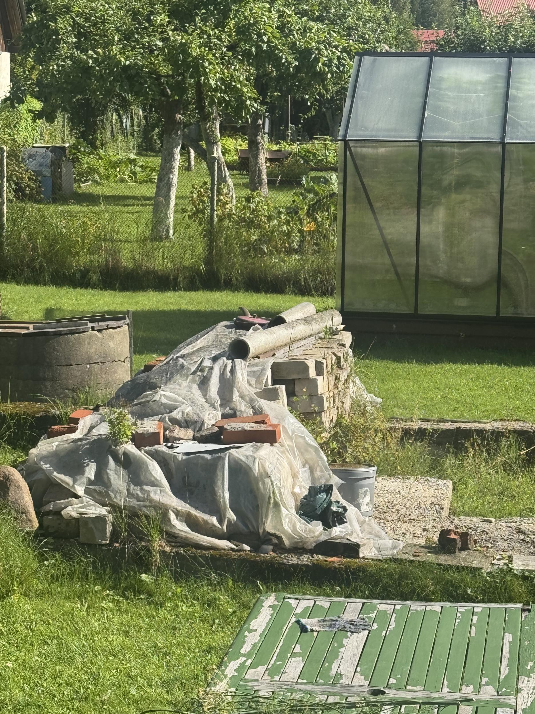 Vaja on lammutada maja ümber olev betoonist sokkel (või kõnnitee) ja vana kasvuhoone vundament.