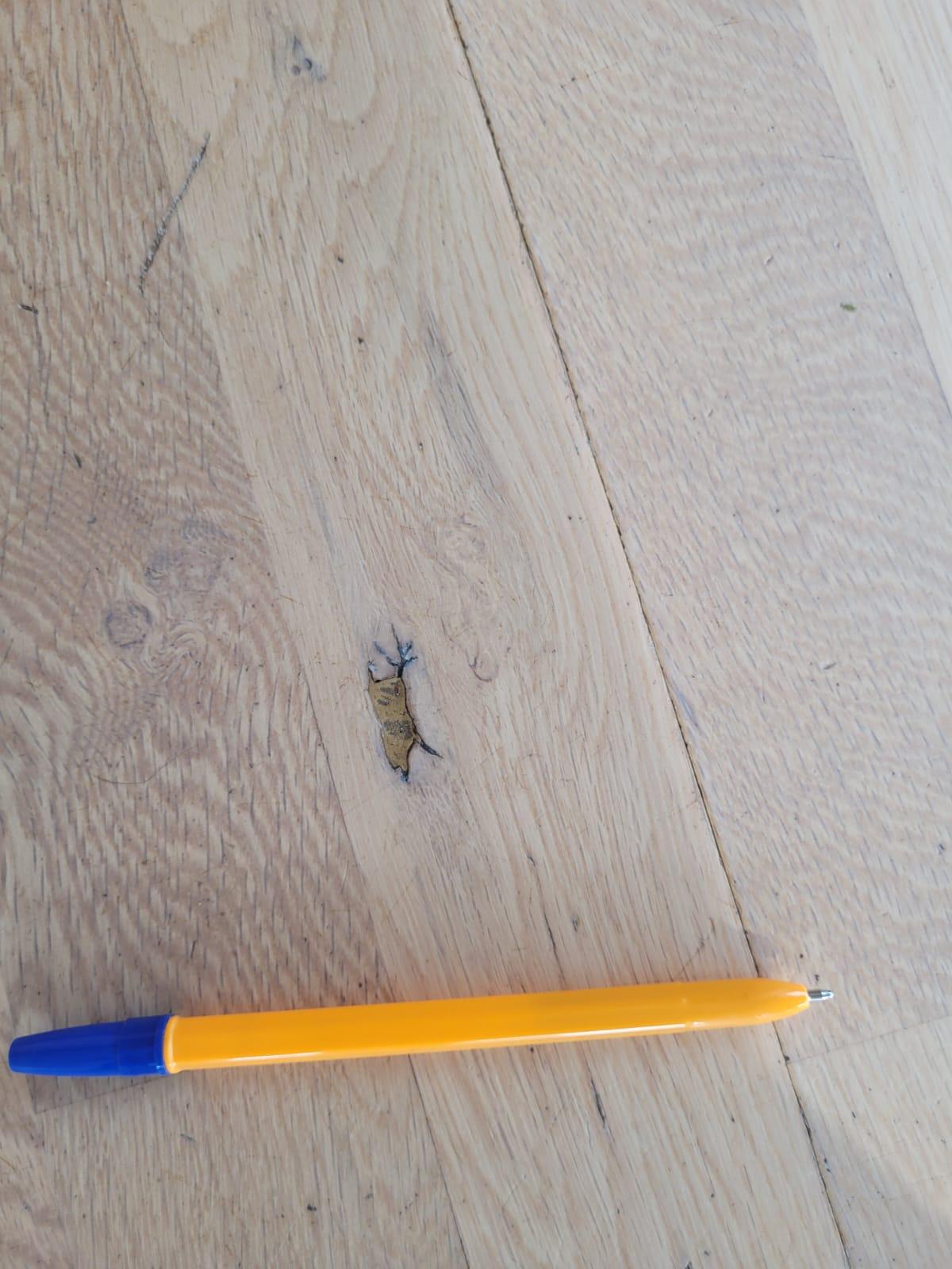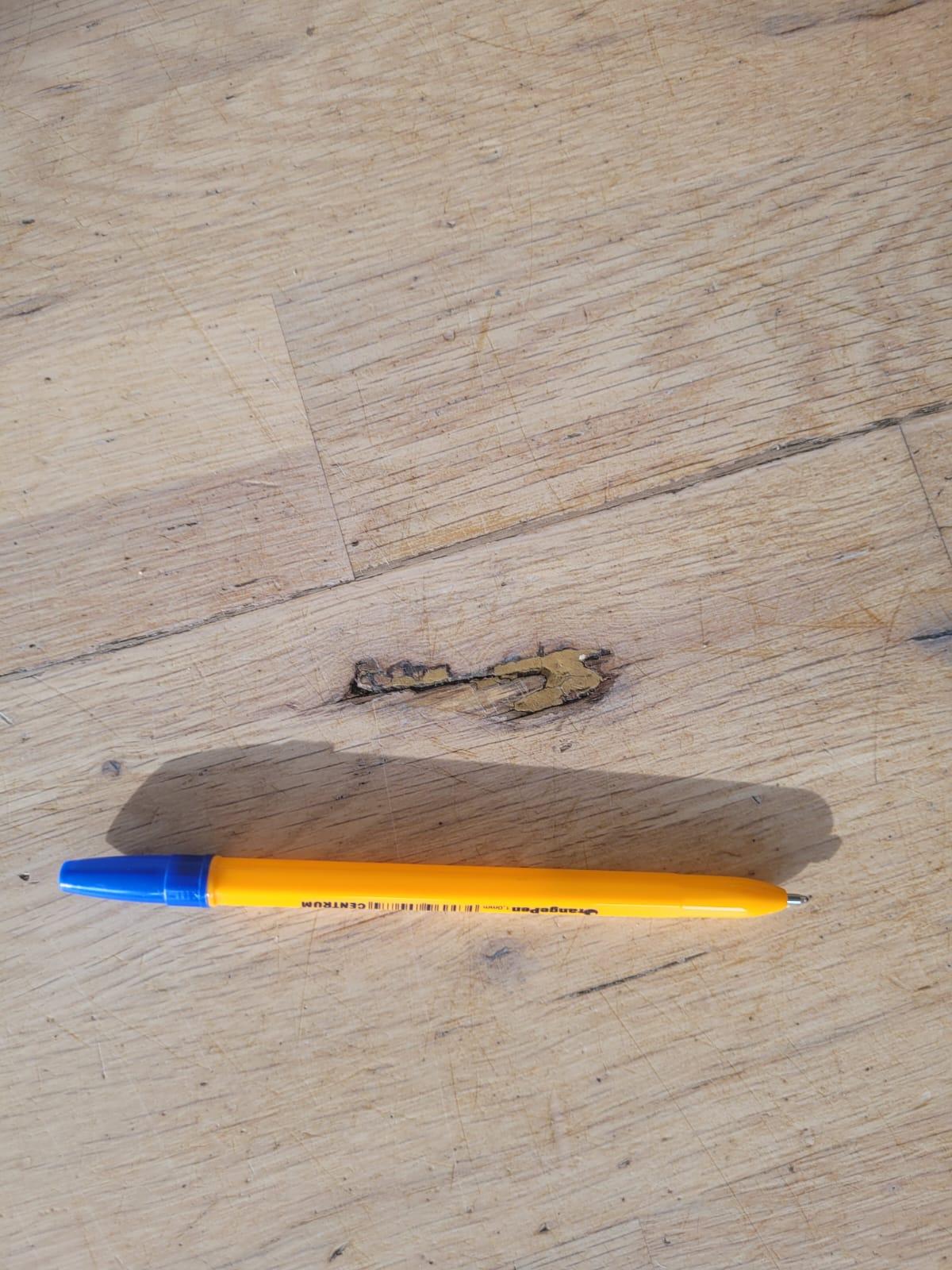 Lihvime ja lakime poolmatt toonimata põrandalakiga. Lakk ning augu parandus sisaldub hinnas.