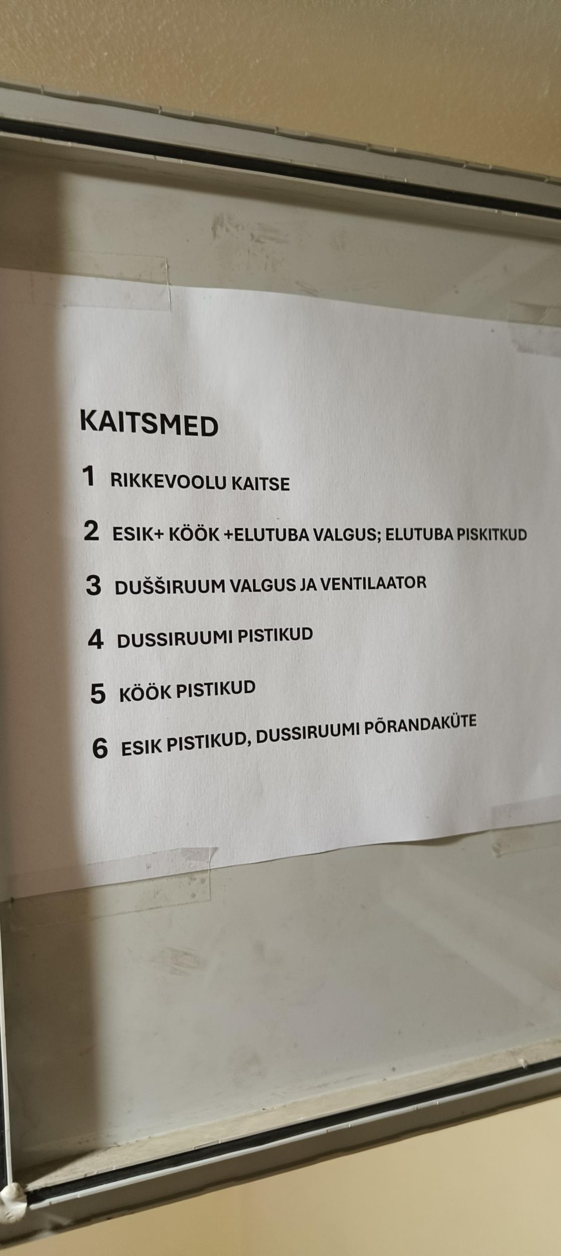 6. Kõikide pistikupesade liinide ning duširuumis asuvate valgustite liini ees puudub rikkevoolukaitse.