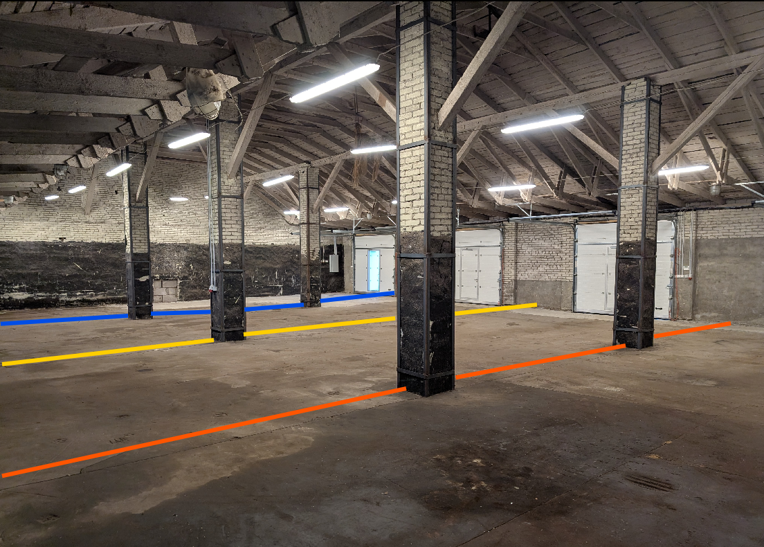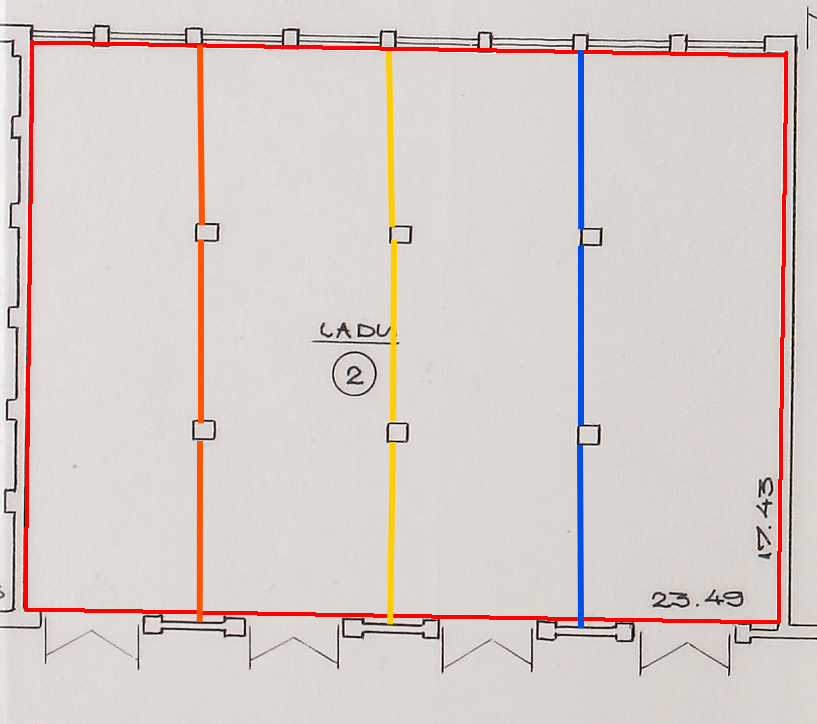 Siseruumides on vaja laduda kolm vaheseina (Fibo100 ). Vaheseinad tulevad olemasolevate kivipostide vahele (vt fotosid ja joonist). Iga vaheseina suurus ca 91-92m2, kogu töömaht ca 275m2. Hoone ei ole loodis, vaheseinad ei pea olema puhta vuugiga jne. Ruumipõrandalt harjani kõrgus ca 6,5m. Korralik valgustus ja elekter olemas, vett ei ole. Roklaga saab kivialuseid ruumis liigutada. Tellingud ehitaja poolt.