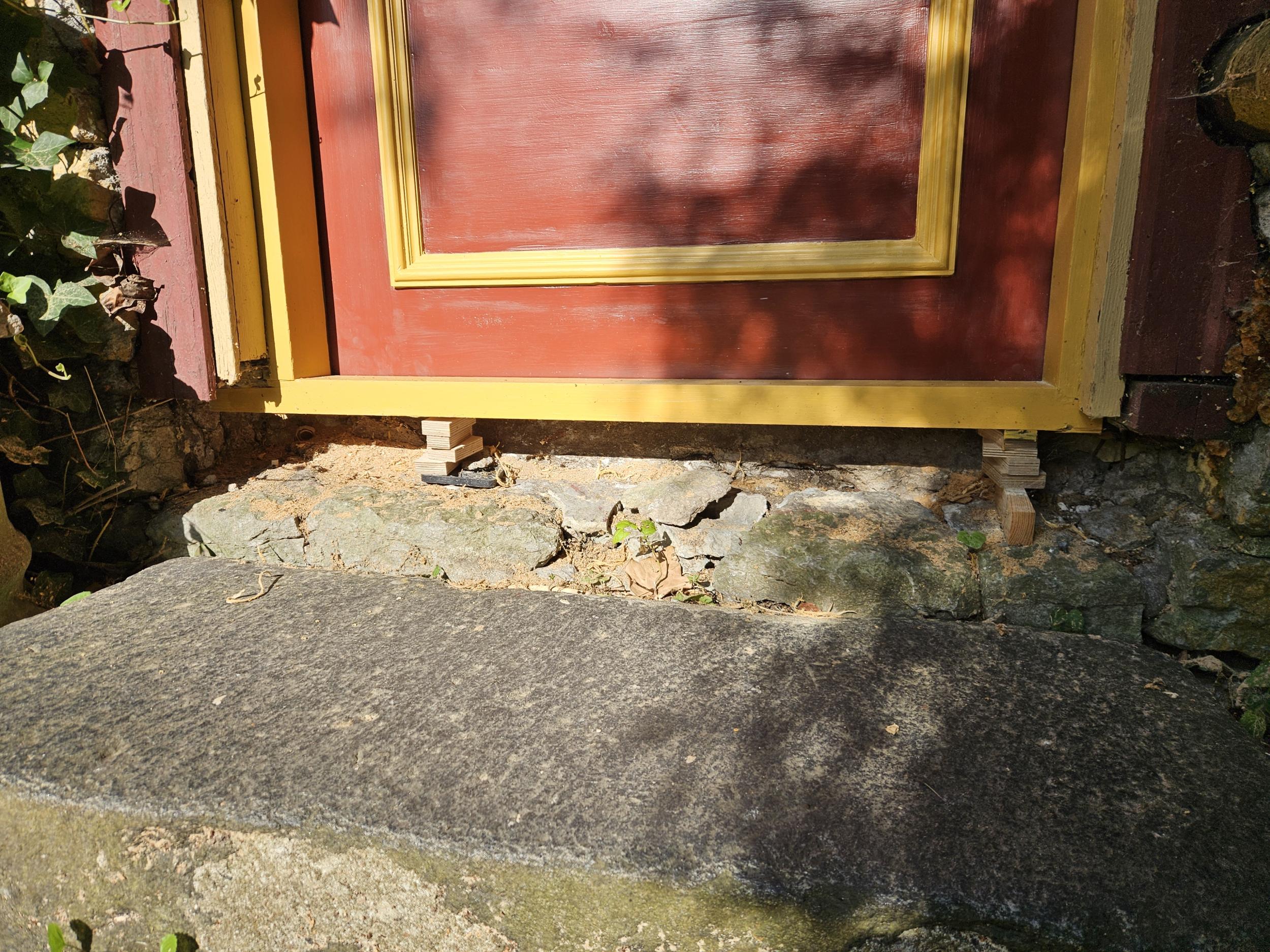 On olemas paekive, mida ukse alla sobitada, aga põhiliselt peaks vast sinna tsementi valama ja isolatsiooni paigaldama.