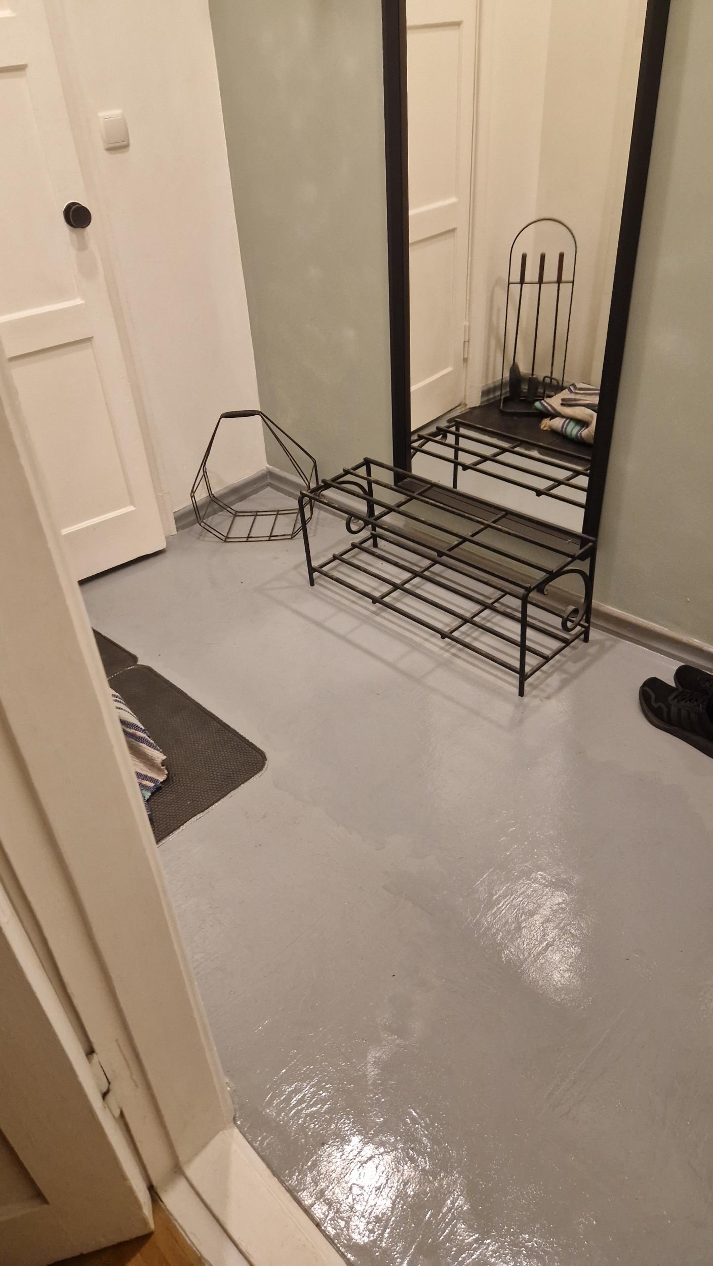 Vana puitmaja korteri koridori põrand on sellises seisus, tundub et on kaetud mingi pvcga ja siis veel üsna lohakalt üle värvitud, aga garantiid ei anna lisaks iidvanad liistud. Pinda 4.7m2. Soov oleks sellest jubedusest lahti saada ja uus pvc kate ja korralikud liistud panna et üldmulje oleks puhas ja korrektne.