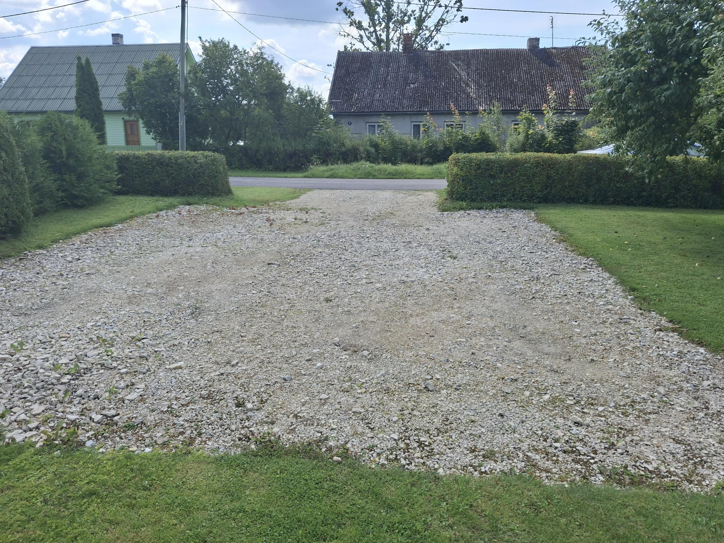 Platsidel on rajatud ridakillustikust alus (v.a. jalgteed). Alus vajab ilmselt tasandamist. Paigaldada kõnnitee äärekivid (1000x200x80), paigalduskiht ja sillutiskivid (NUNNA 200*100*60MM HALL).