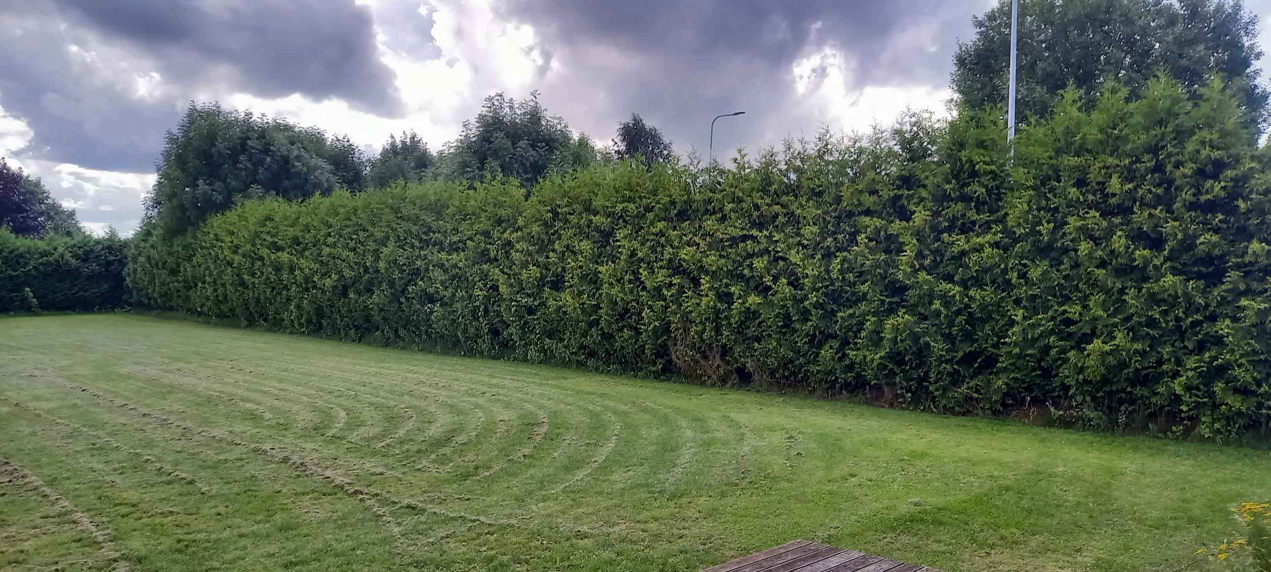 Brabant elupuuhekk kõrgus 3.5m +/- , umbes 71 jooksvat meetrit, asub harkujärve taga, aia kõrgus 1.5m.