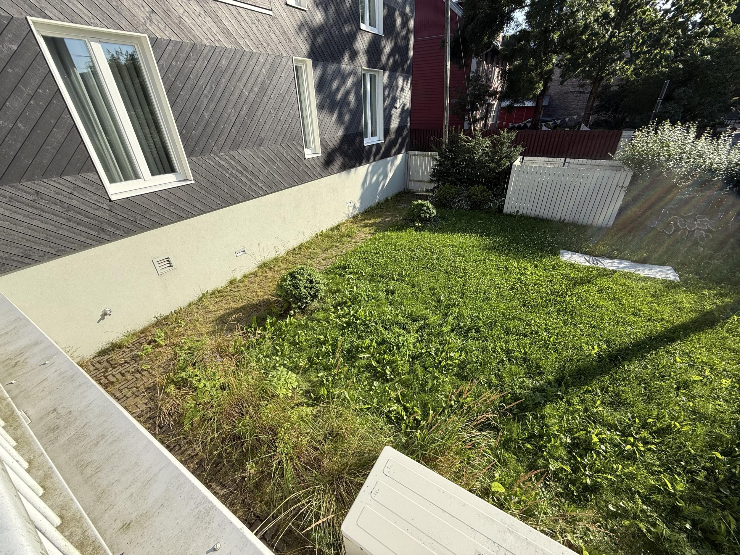 Hooviaeda korrastamine - rohida peenrad, puhastada sillutis taimede läbikasvust, niita muru. Kokku kaks aeda 125 + 95 m2