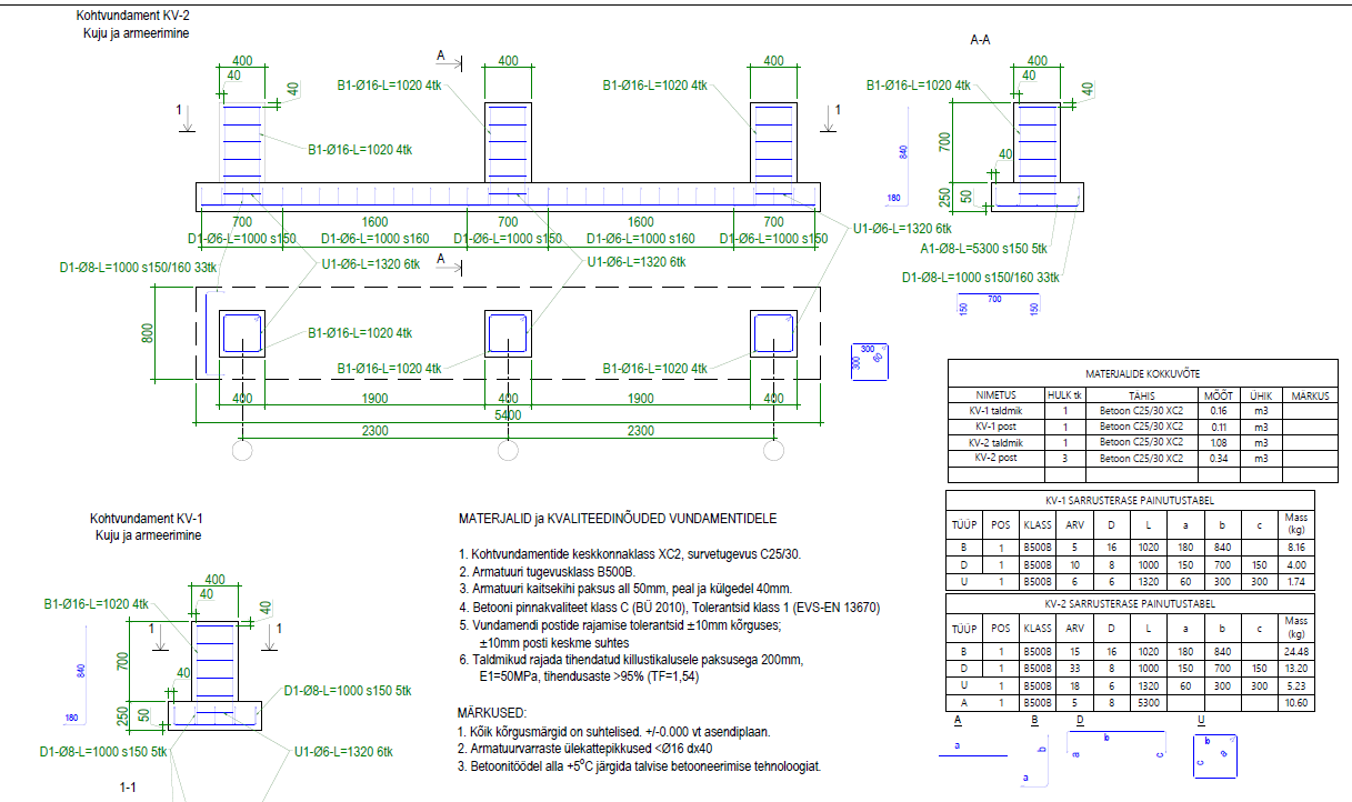 Töö peab sisaldama vajalikku kaevet, vundamendite valamist koos vajalike detailidega (armatuur, keermelatid jne). Betooni maht ca 2,37m3. Võib pakkuda ka ainult betoonitöid.