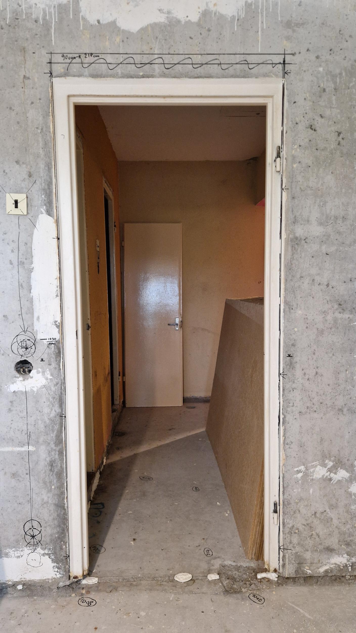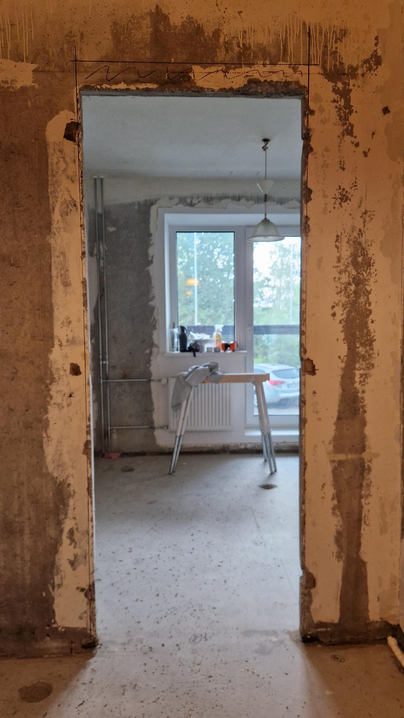 4 siseukse ava + 1 olemasolev köögiukseava kõrgemaks ja täisnurkseks (köögi poolt on laiem, lõigata esiku poolt sama laiaks ehk siis täisnurga alla). Avade mõõdud on seintele märgitud.