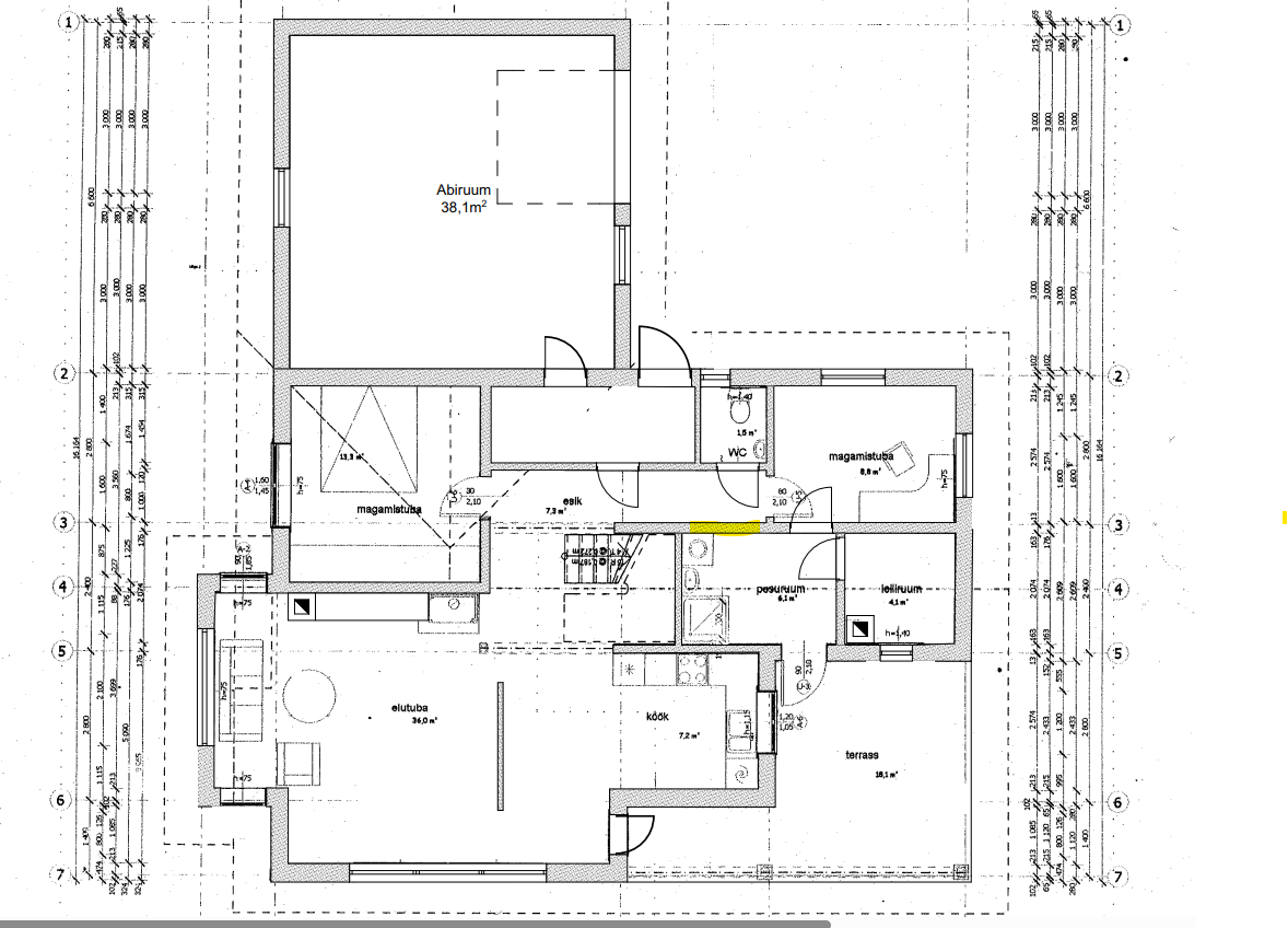 Vaja oleks projekt, et liigutada siseuks mis viib pesuruumi magamistoast koridori (kollasega märgitud alasse)