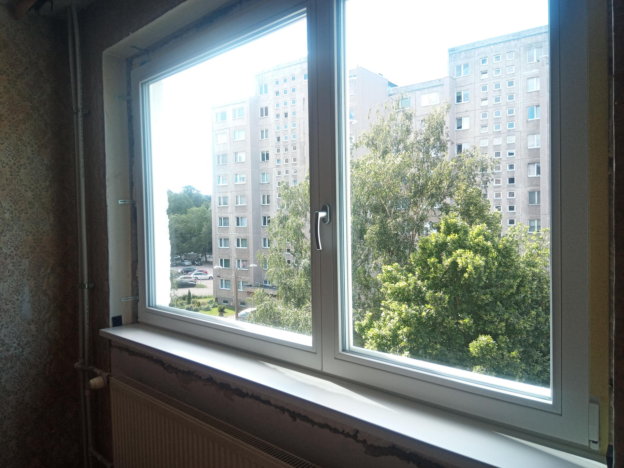 Üks aken ja üks rõduuks. Aken: välis- ning sisseviimistlus. Rõdul käib remont ja on suletud, ehk ilmselt ei ole välisviimistlus praegu võimalik.