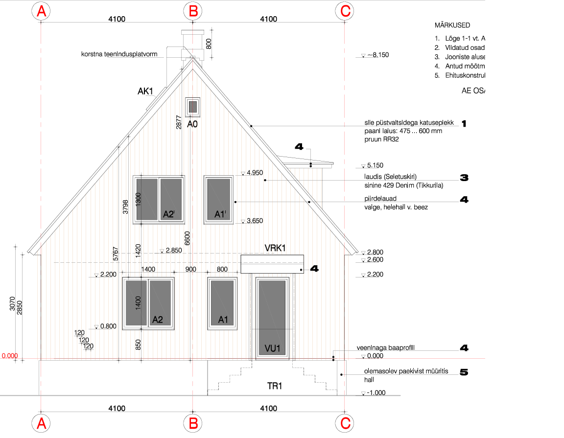 Fasaad:Eemaldatakse olemasolev silikaattellistest välisvooder ja termoliidist soojustus.