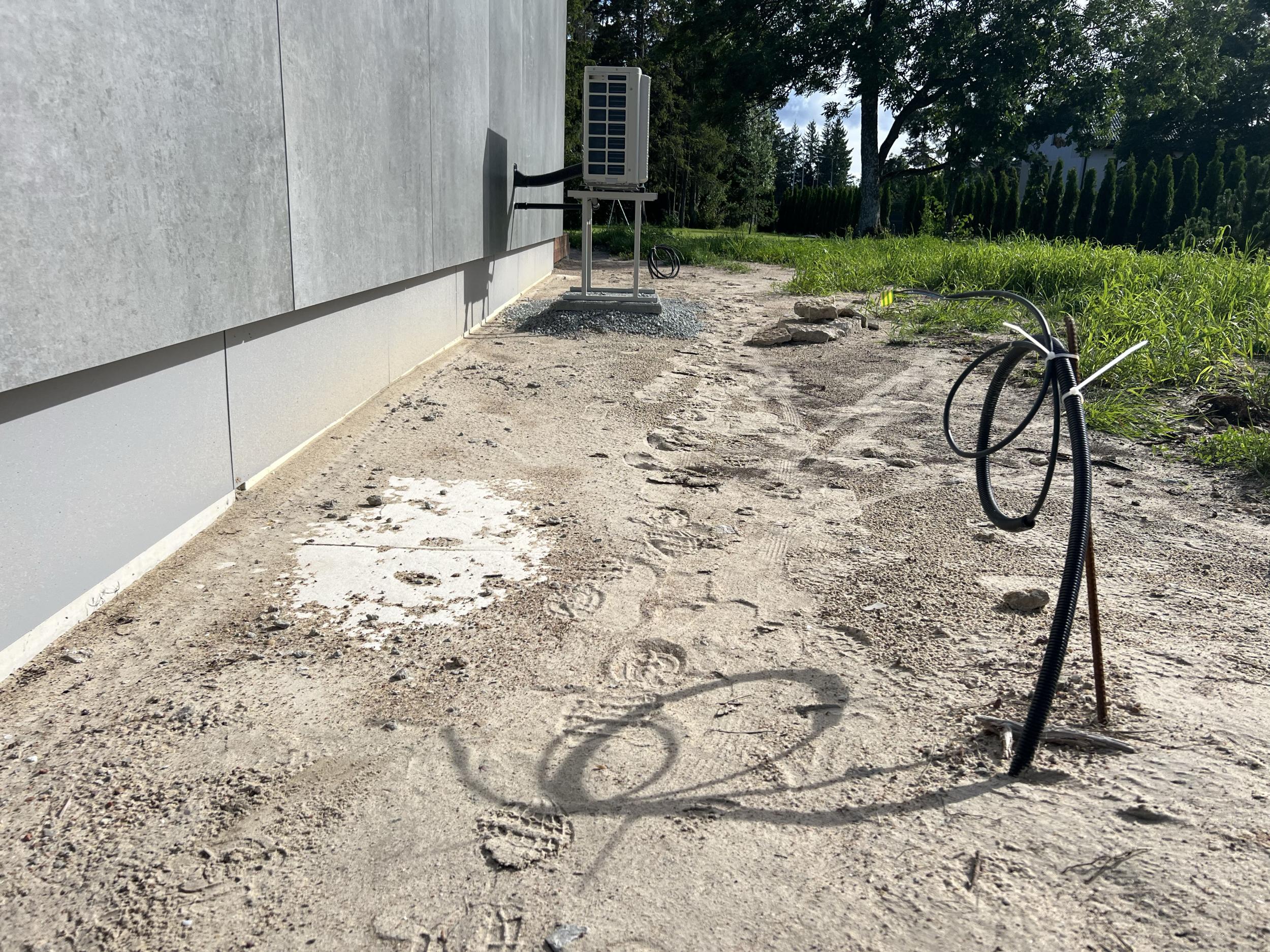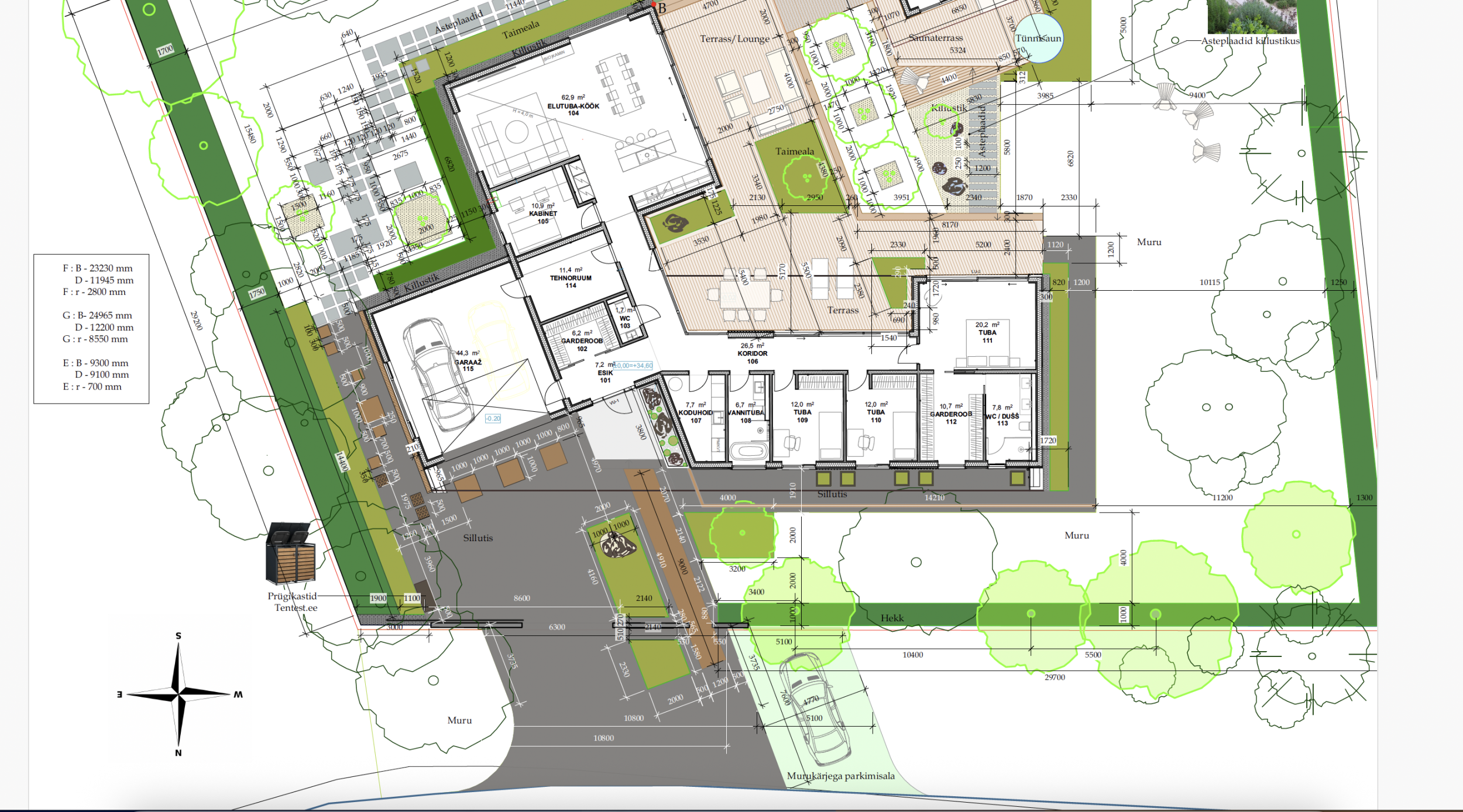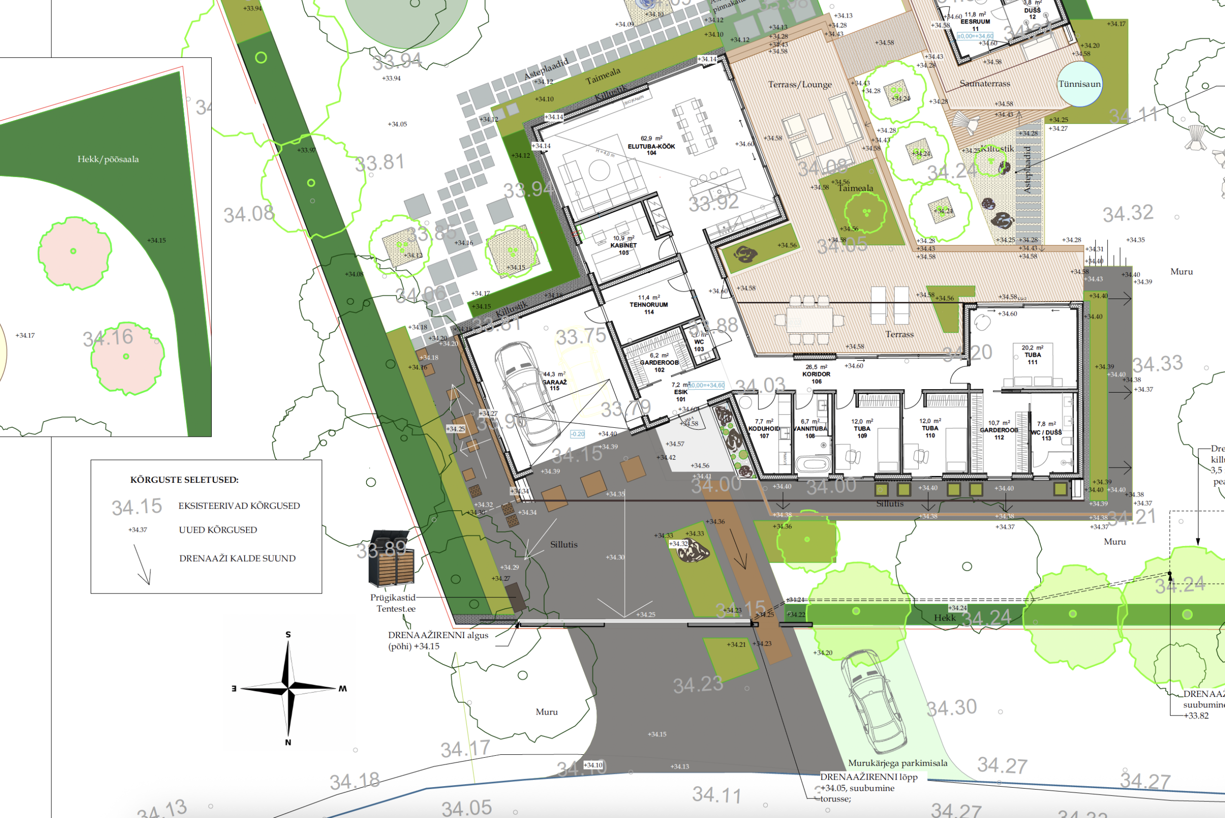 Tänavakivi Loimukivi 60, äärekivid, vuugiliiv ja killustik tuleb tellija poolt. Projektis märgitud erinevad kivid, kuid kasutame ühte Loimukivi 60(pildil näidatud ka ala, mis läheb tegemisele). Ülejäänud materjal/täide tuleb tegija poolt. Tänavakivi kokku on 240 m2 ja äärekivi 138 jm. Projektis näidatud ka killustiku asukohad maja äärtes. Killustiku äärtesse, kus ei ole tänavakivi vastas tuleb kas immutatud laudis või metallääris(kokku 42 jm).