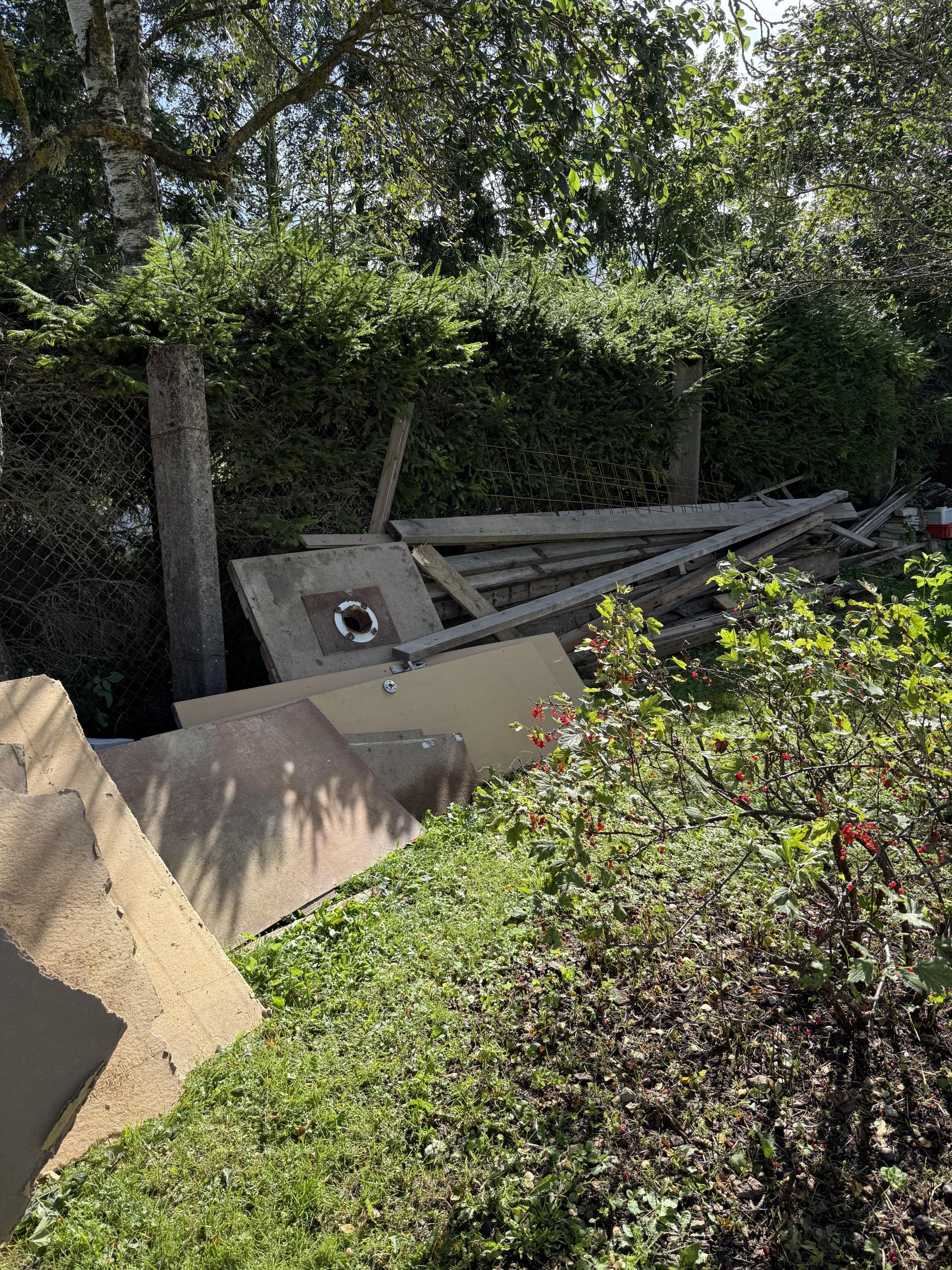 Jäätmete kogumaht umbes 30m3. Enamus mahus puit, puitplaadid, vanad aknad ning 10 kiviplokki. Pakkumine teha täielikule teenusele: jäätmete laadimine konteinerisse, konteineri äravedu ja jäätmete utiliseerimine.