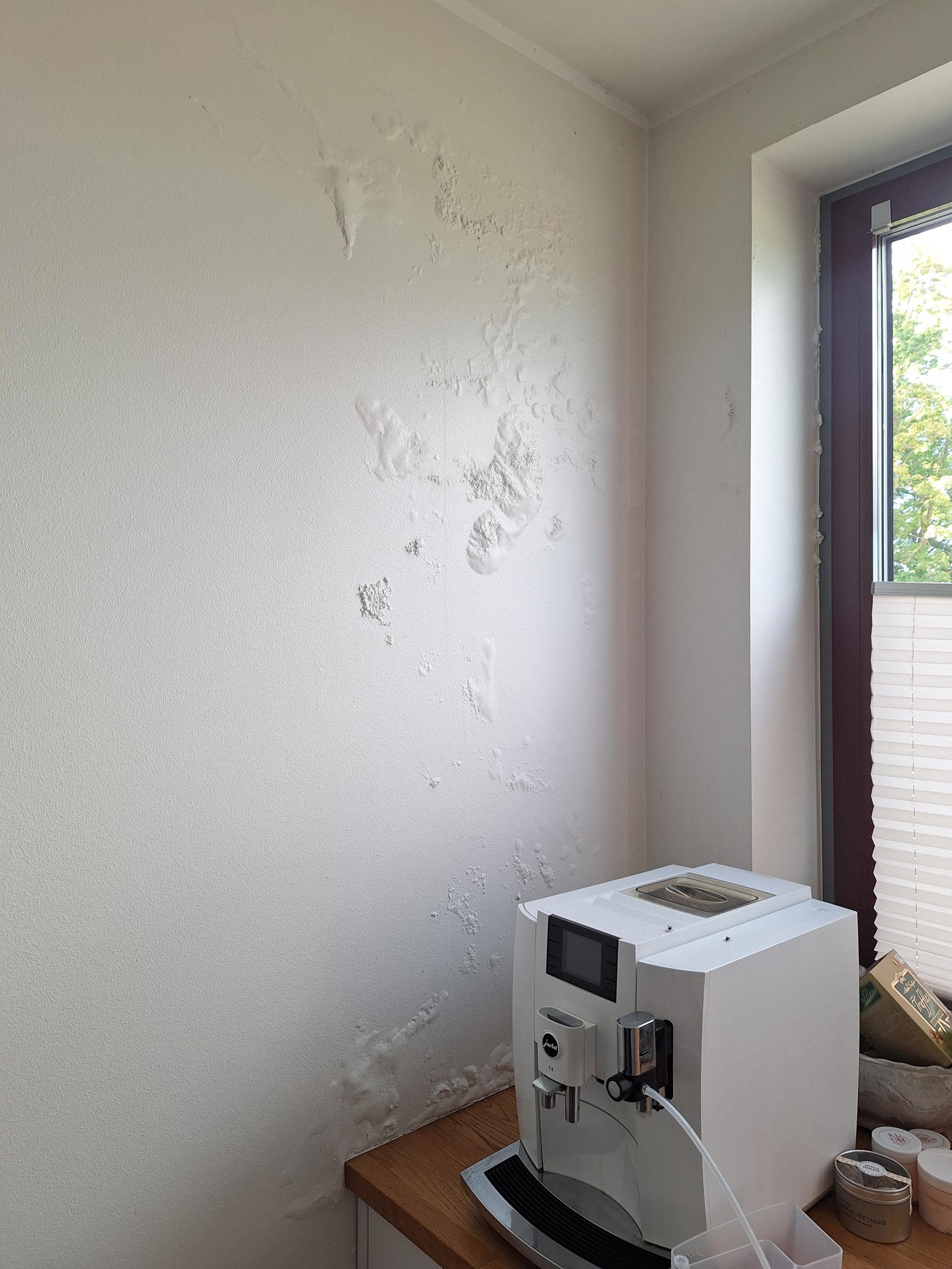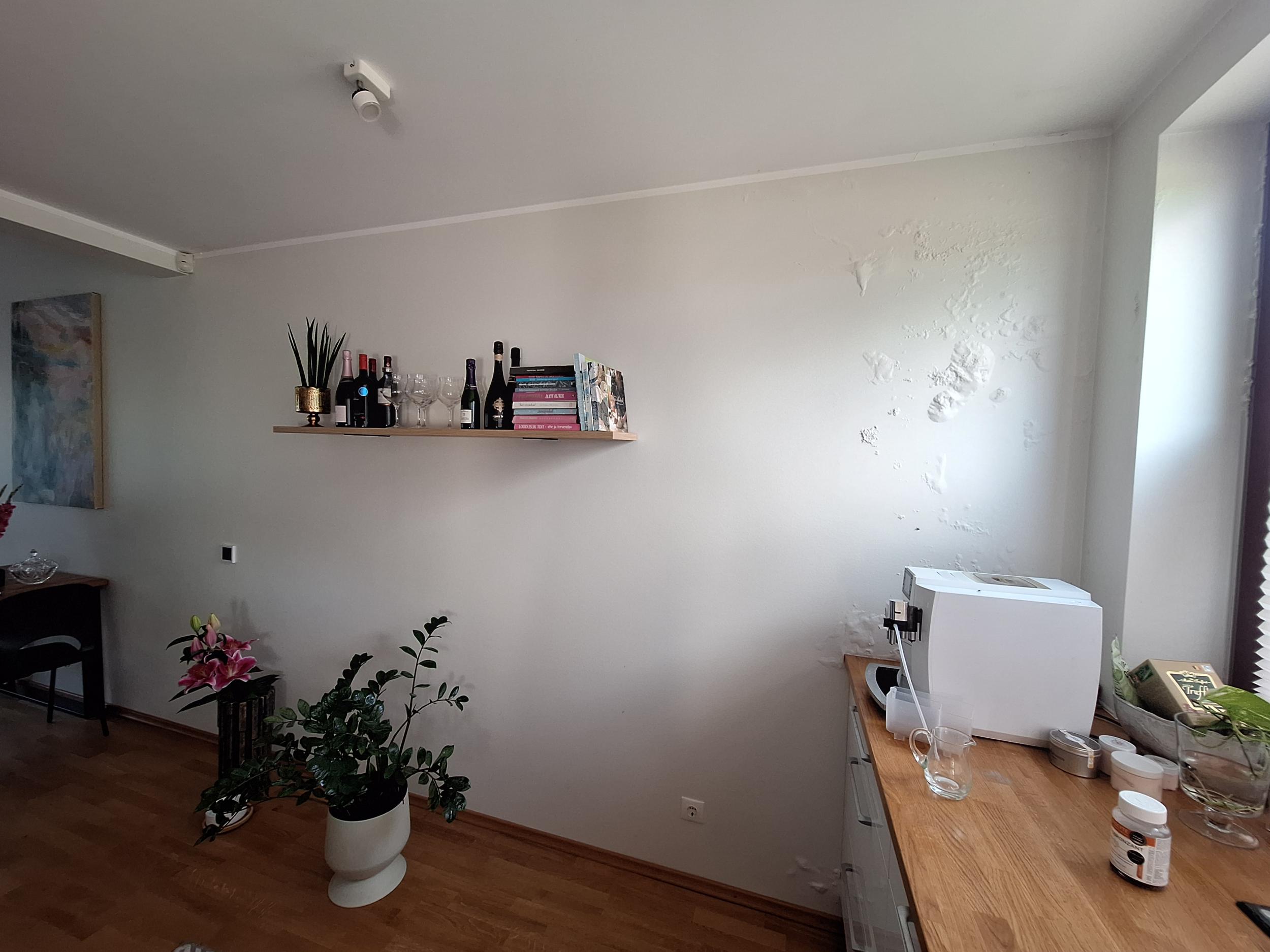 Köögiseinas niiskuskahjustus (põhjus eemaldatud) , ja seepärast tuleb värvida terve sein. (Köök kõrgus 2,5 ja pikkus 5m, suuretoa osa kõrgus 3,4 ja pikkus 5 m)