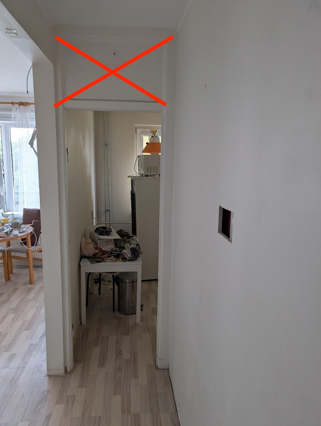 - Köögiukse eemaldamine ja ukseava avamine kuni laeni ja avause viimistlemine