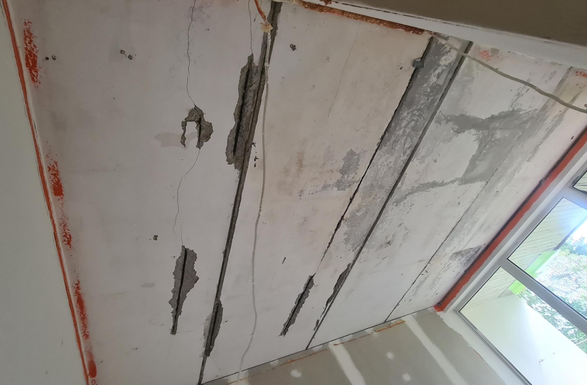 - Lagi korda teha. Praeguseks on laest eemaldatud seal aastaid olnud laeplaadid, penoplast ja puitkarkass. Laearmatuur on tugevalt roostes ja paistab paneelide vahelt välja. Armatuuri välja paistvad osad tuleks puhastada, roostesurmaga üle teha, kaitseks krohvida, lagi värvida.