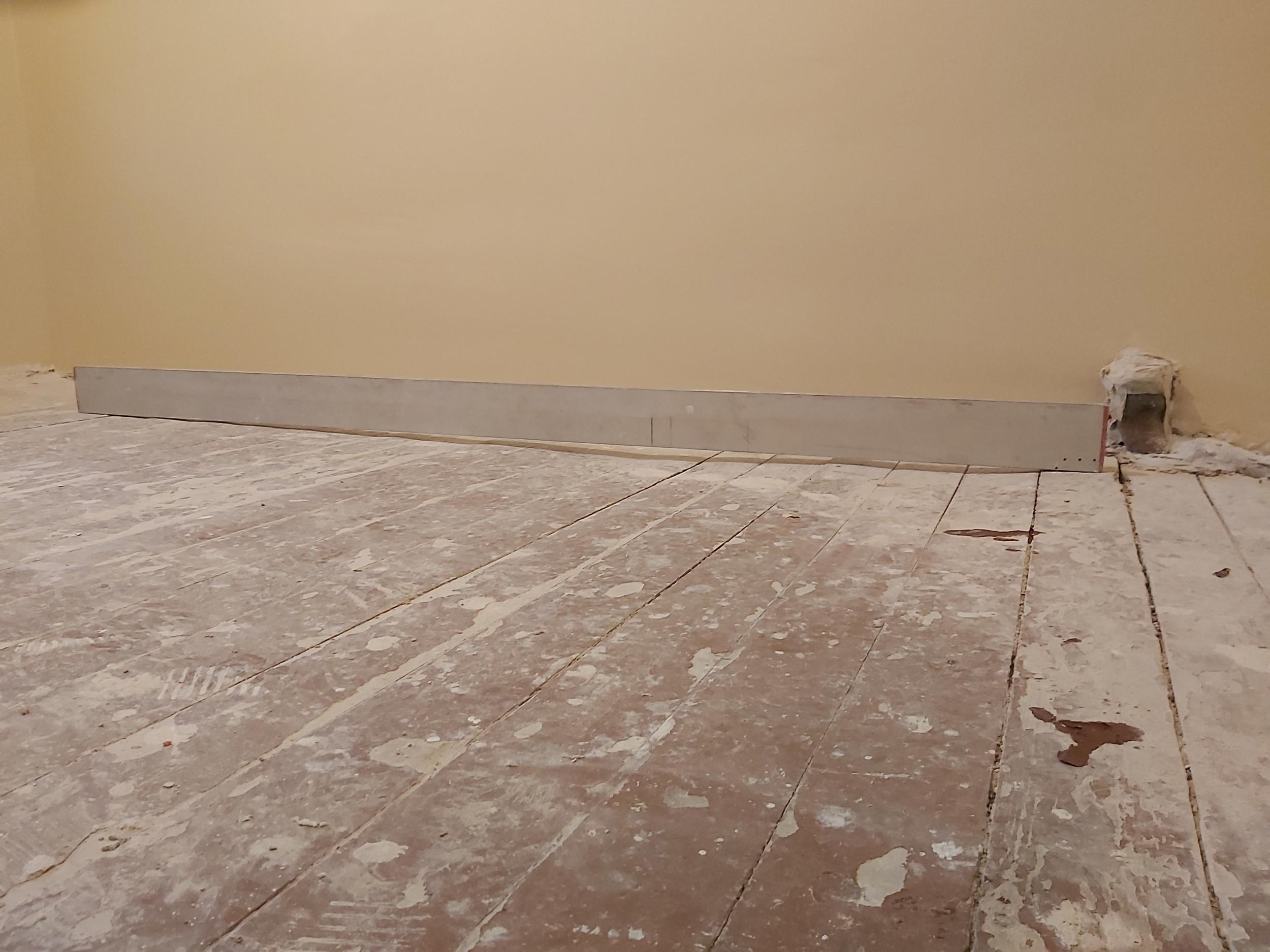 Vanad lauad võtta üles ja utiliseerida. Rihtida alus, soojustada, paigaldada osb, aluskate, laminaat ja põrandaliistud.