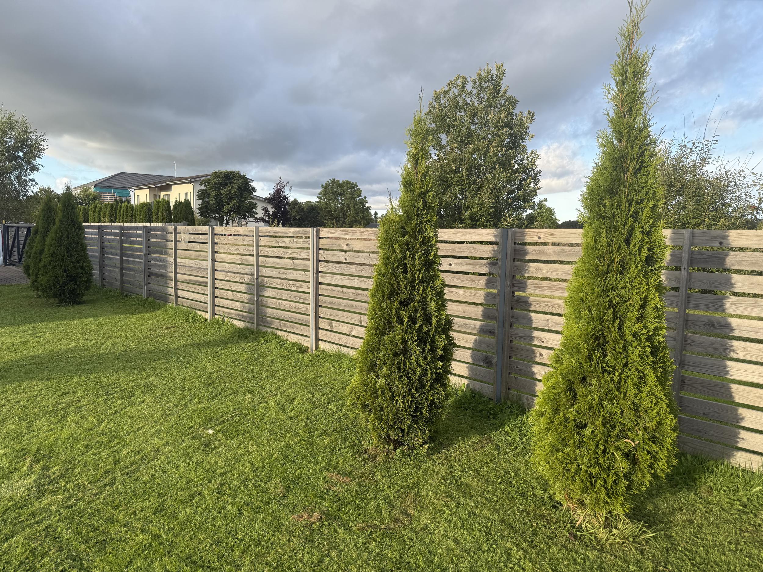 Värv on Eskaro, veepõhine. Sobib puidu pinna katteks. Meetod on värvirullid ja pintslid. Aia postid me kinnitame maalri teibiga. |