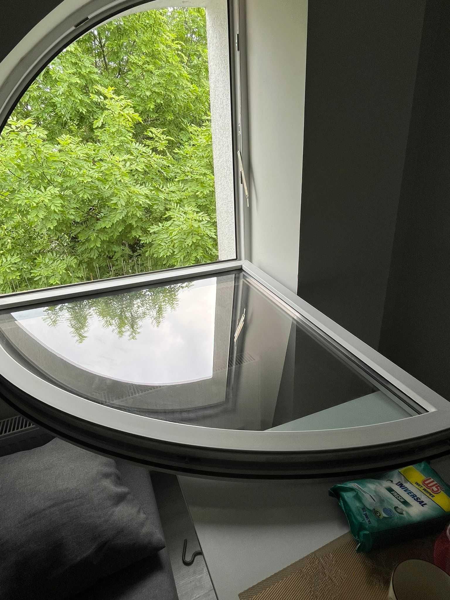 Üks kaarjas aken, mis avaneb praegu vaid ~10 cm või siis peab seda toetama lauale. Aken on raske.