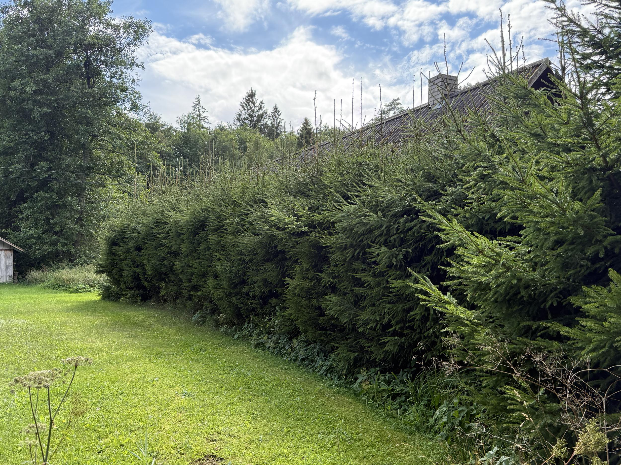 Pikaks kasvanud latvadega hekki on ca 50 jm (2 pilti) ja eelmisel aastal lõigatud hekki ca 84jm (1 pilti).