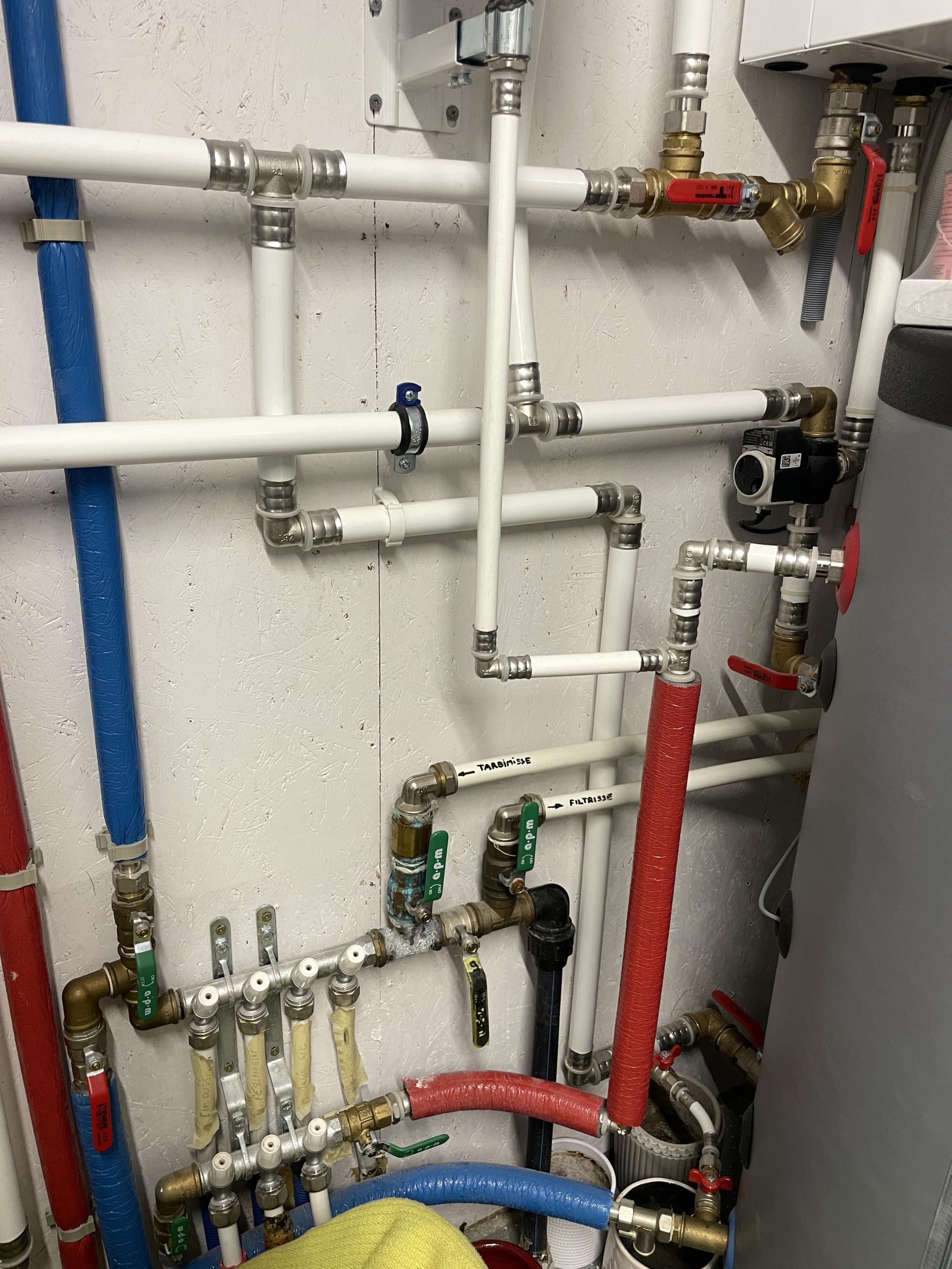 Üldine kirjeldus (täpsem failis): Palju erinevaid veetöid. UV-filtrite, õhueraldajate ja filtrikorpuste paigaldus, survevoolikute asendamised alupex torudega, aiakraanide välisühendused uuesti lekkekindlalt paigaldada ja 2tk läbi seina uut paigaldada, segistite asendamine jne.