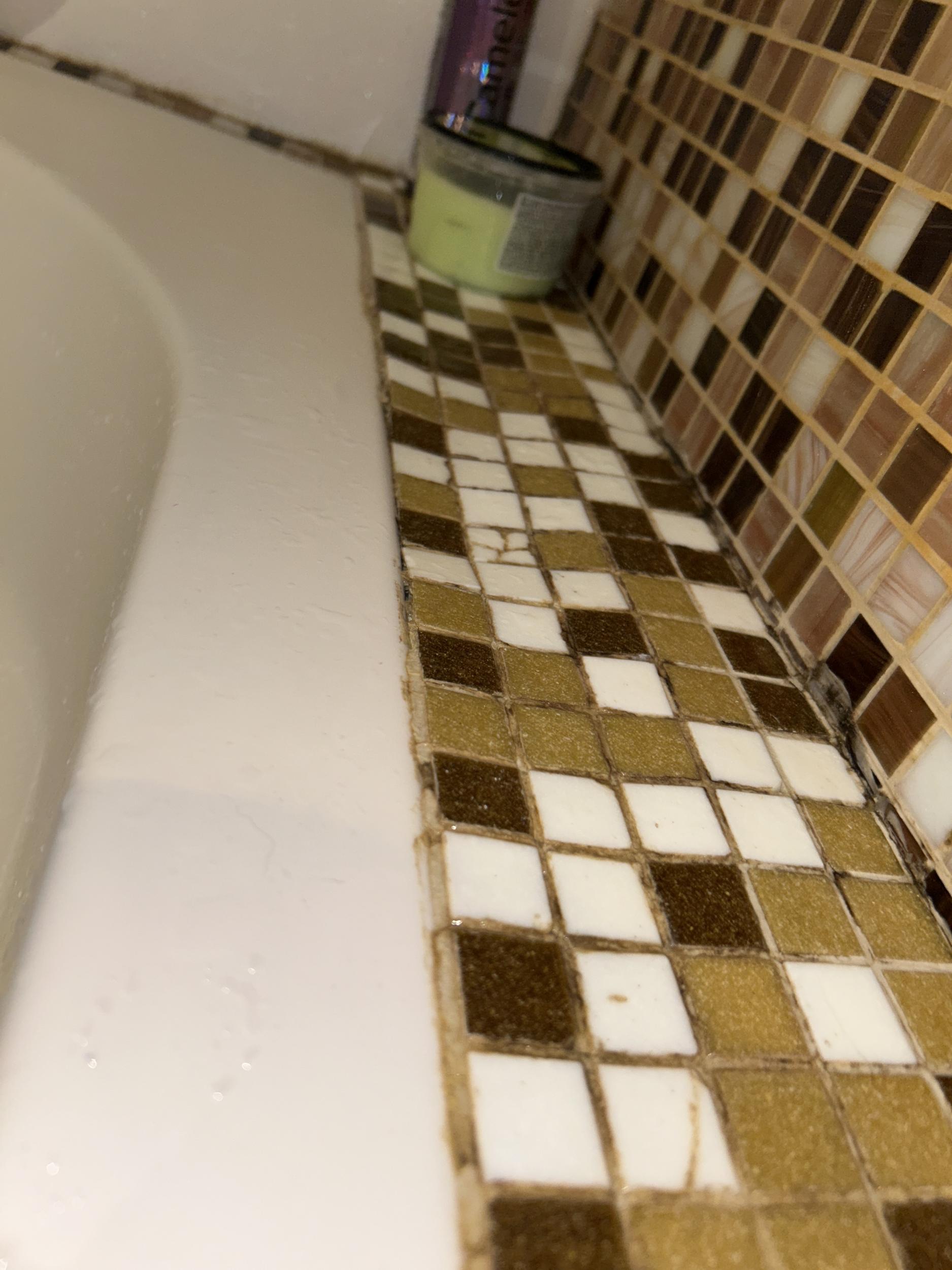 Viimasel pildil on näha, et üks osa vanni ääres on niiskusega kahjustada saanud.