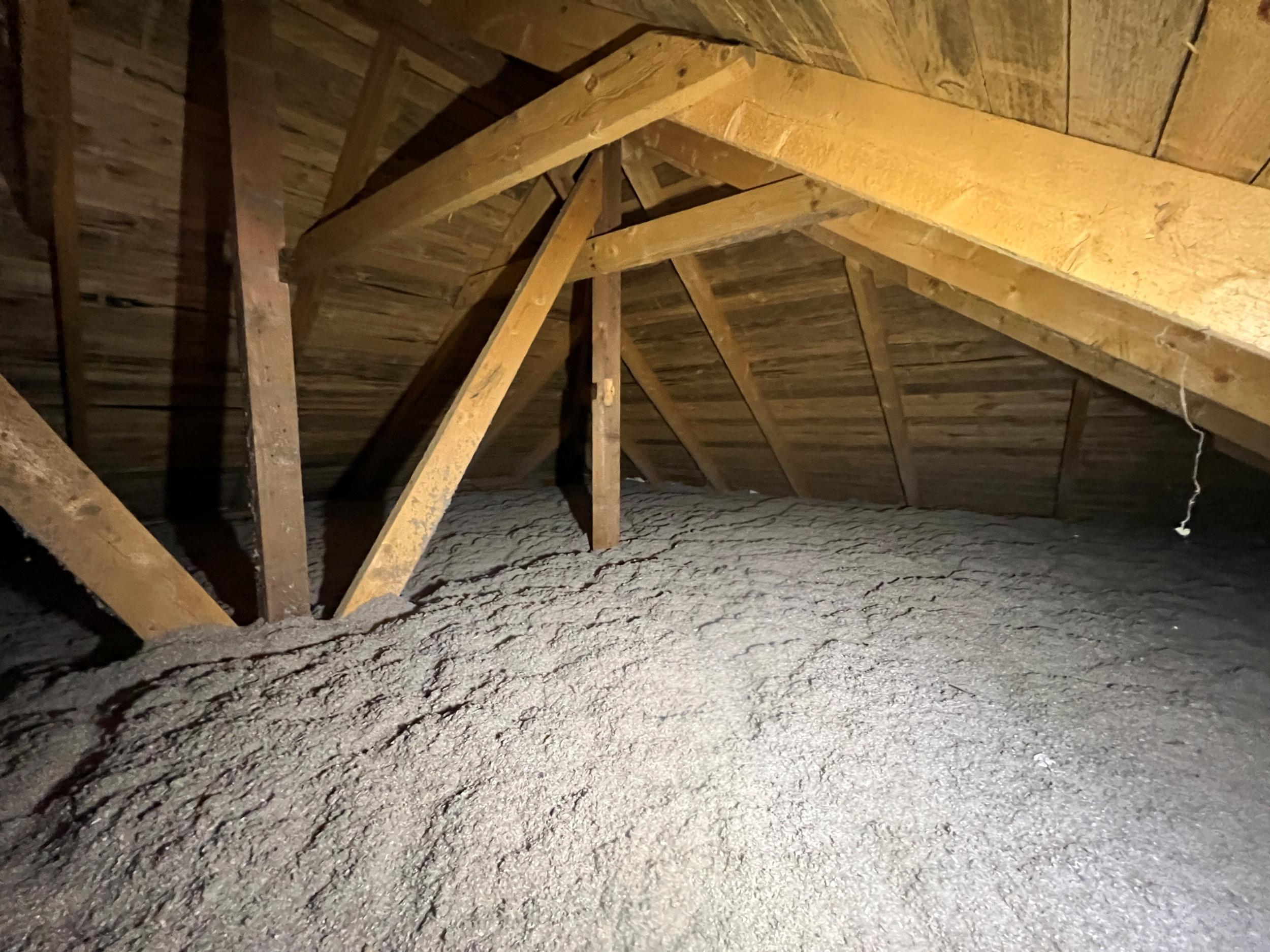 • Pööningul on põrandal 30 cm puistevilla, selle all liiv, talad ja lauad.