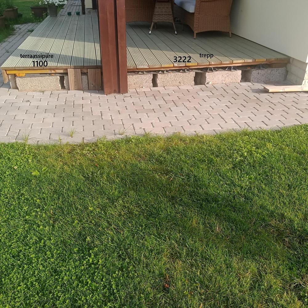Tere. On vaja terrassipiire 1.1 x 5.22x 1.02 kuni sammas, edasi 1,22 teha 1 aste.