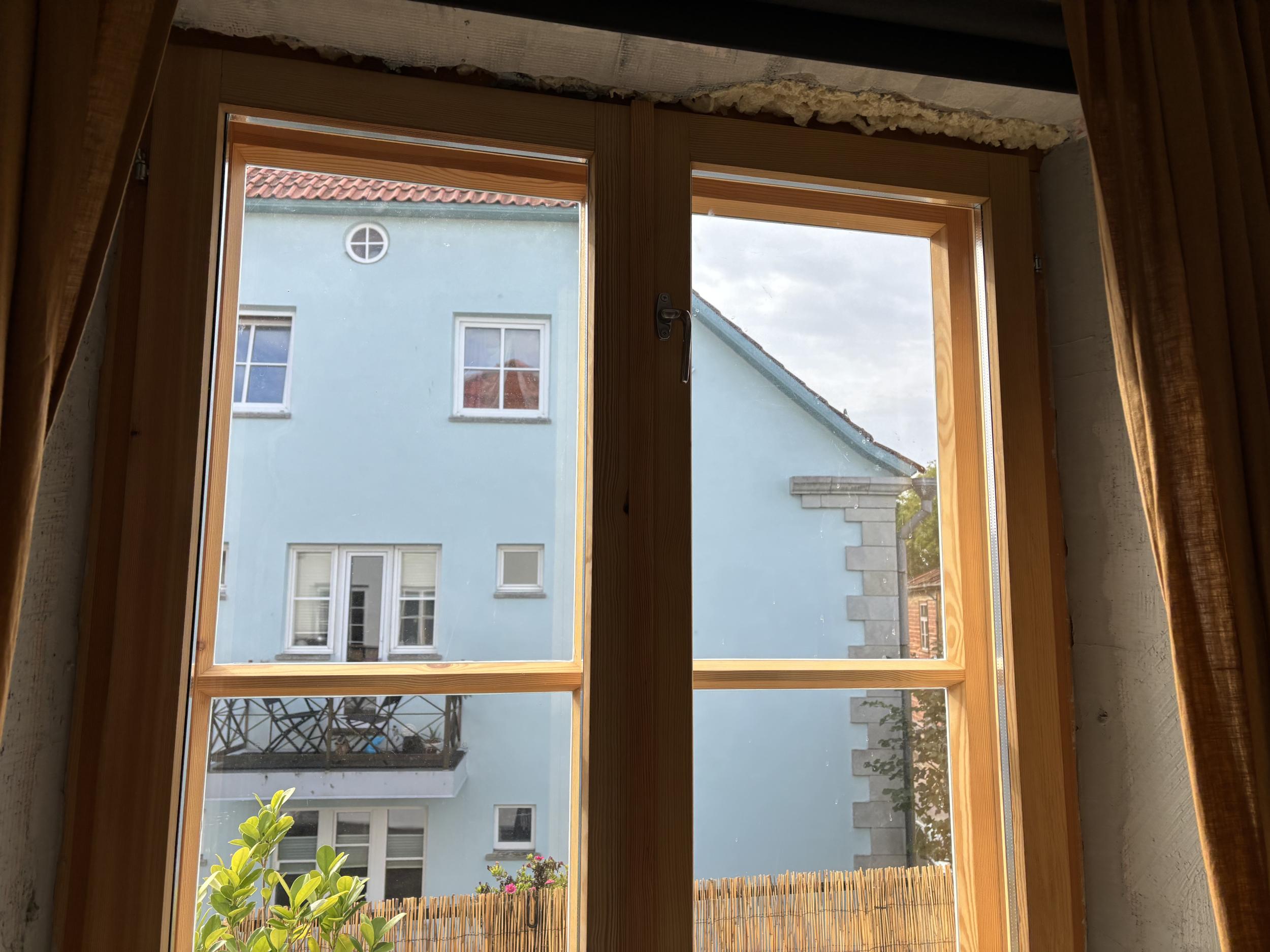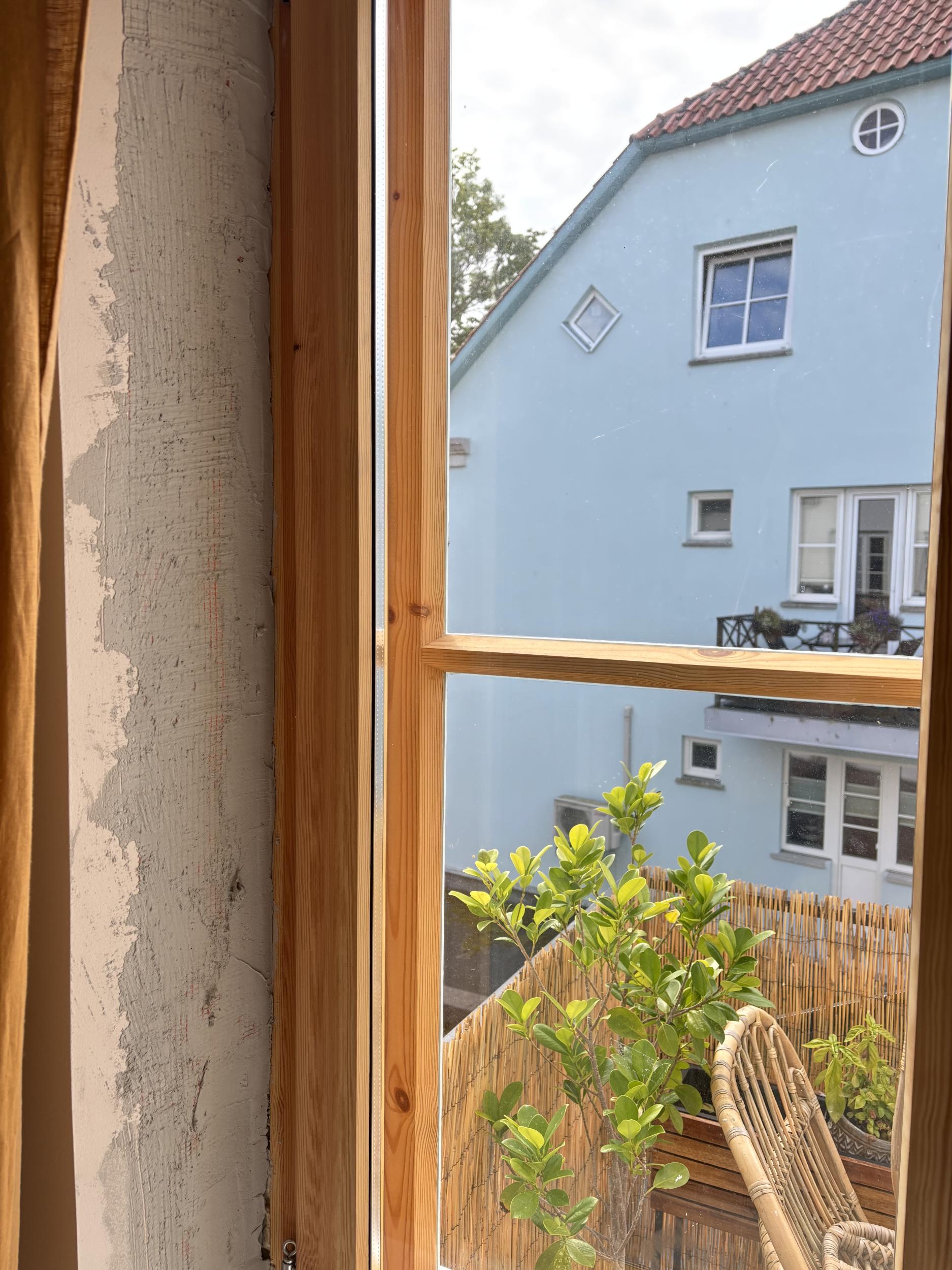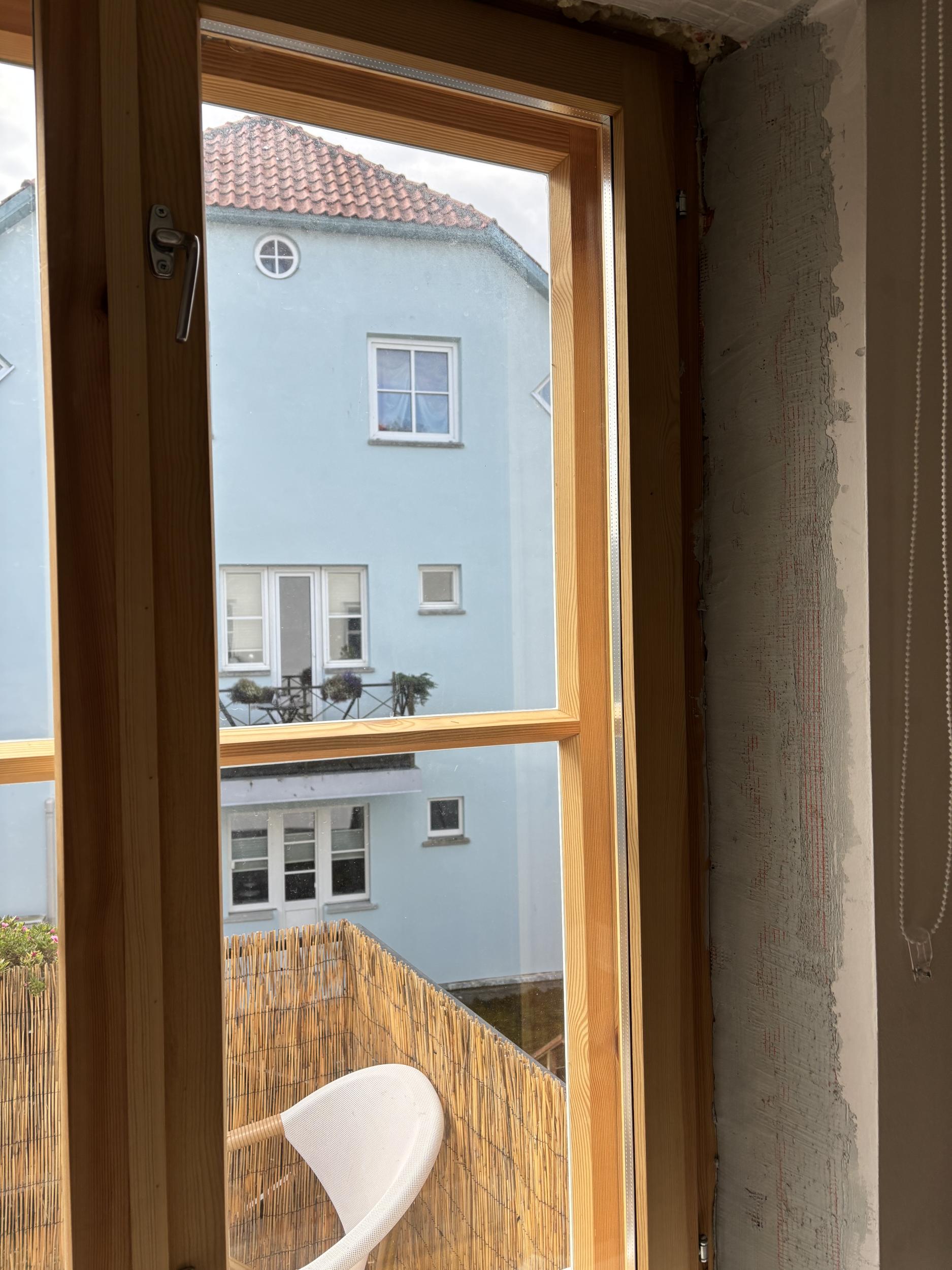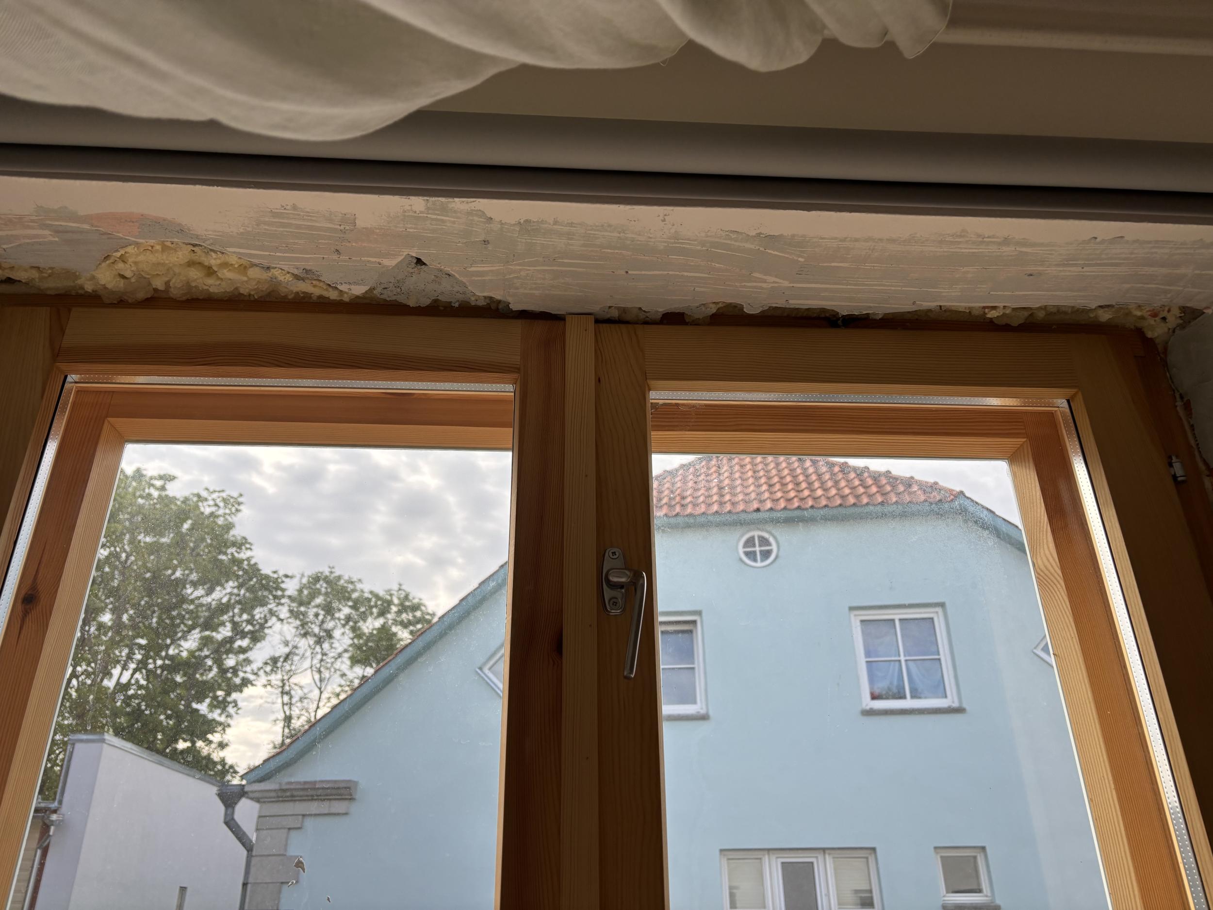 4 akent kokku. Väikesel aknal täisring, kolmel suurel aknal ainult küljed ja ülevalt. 2-l suurel võimalik, et tarvis natuke vana krohvi veel ära toksida kuna vahe akna lahti käimisega u 0,5cm. Aknapõskedele tehtud armeering ja üks kiht krohvi.