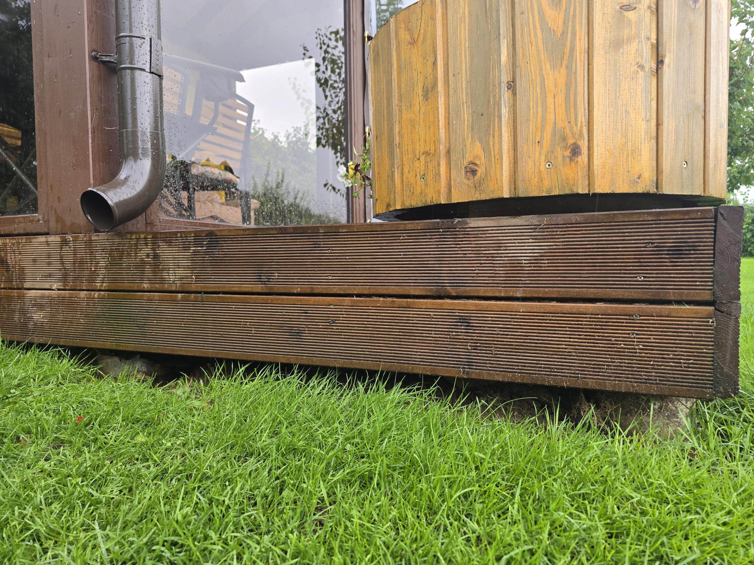 400x400x40 kivide peale plastkandurid ja sinna peale immutatud prussid 50x150. Terrassi laud 22x 90/p120