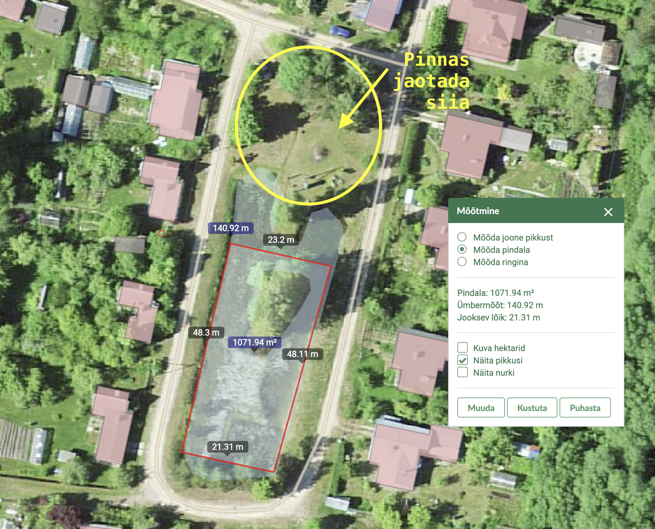 Tiigi mõõtkava kujutatud kuvatõmmisel ja kuhu võimalus pinnas jaotada on märgitud kollase ringiga.