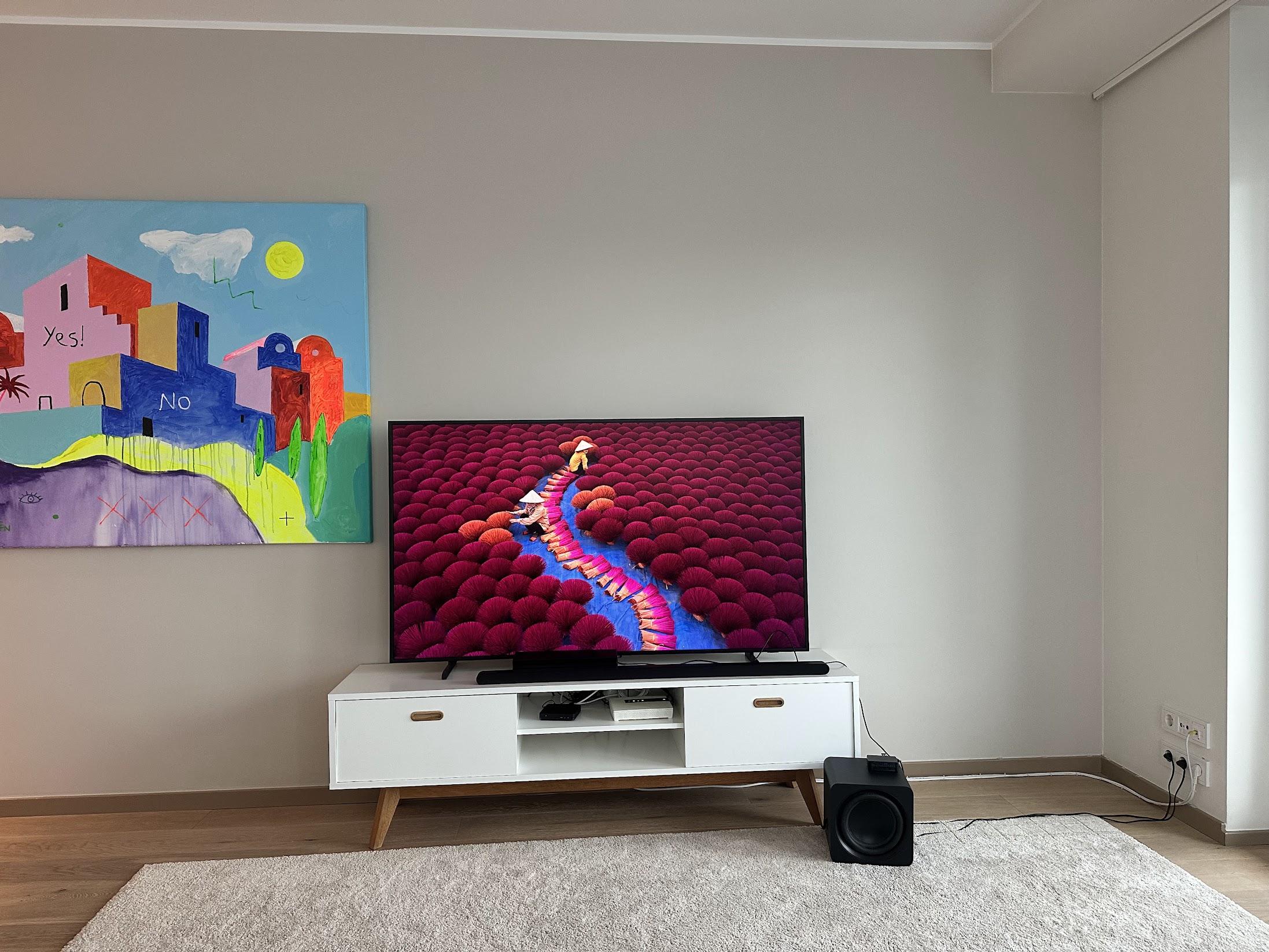 Tagumine sein on betoonist, kaabli torud tuleb sisse freesida ja viimistleda algsele kujule (värvile). Külje sein on kipsist ning pistikupesad tuleb algsest kohast liigutada TV alla (kapi taha). TV on Samsungi The Frame 65".