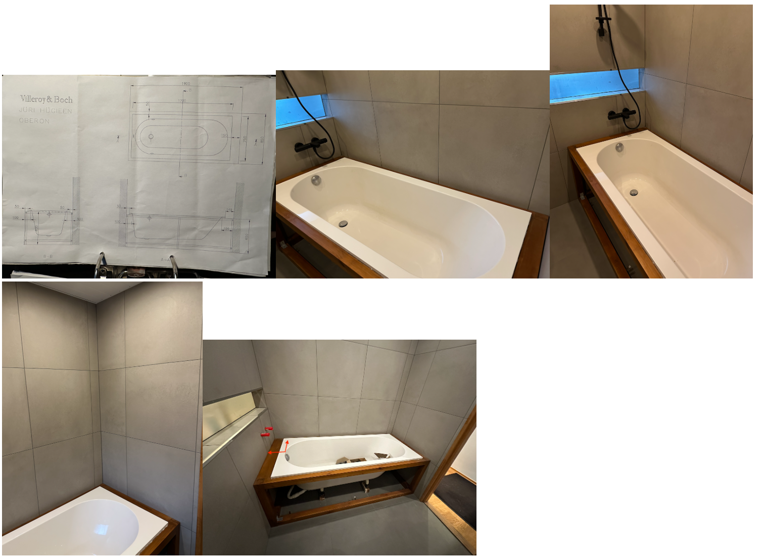 • Vann tuleb liigutada nurka (suunad on pildil markeeritud punaste nooltega). Aitab lahendada tekkinud probleemi segistiga ja probleemi paigaldise tihendamisega, et pesemisel üleliigne vesi ei satuks suures koguses n-ö vanni taha.