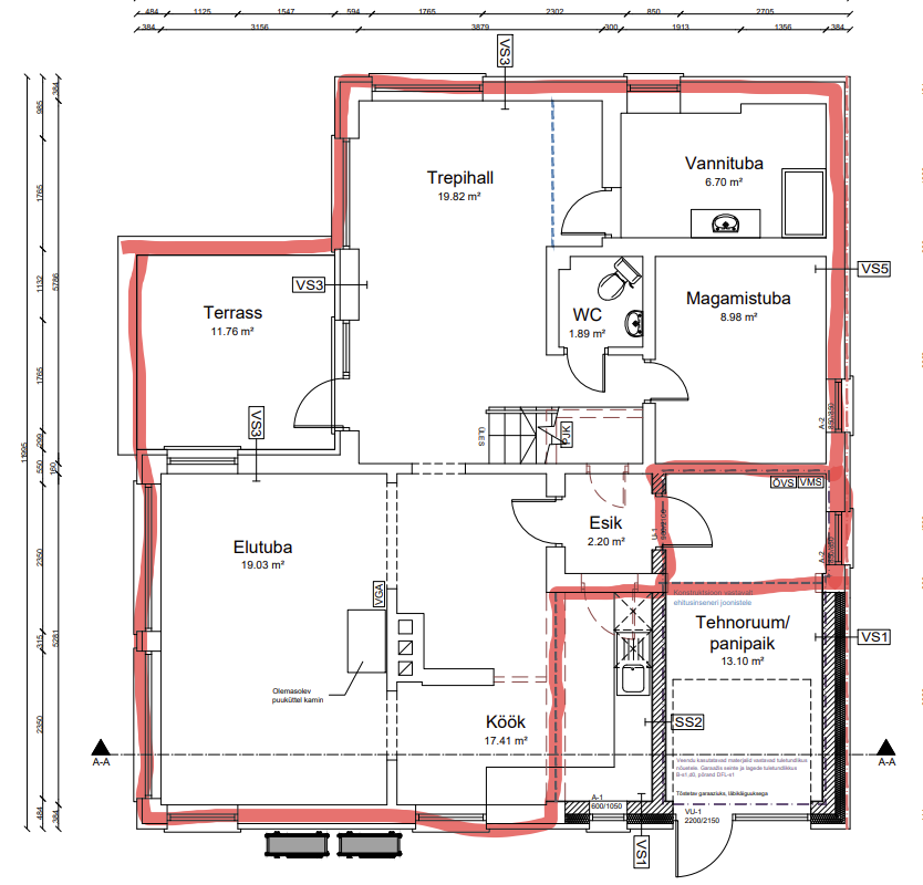 Vana viimistluse, akende, uste ja katuse eemaldamine Vajalike siseseinte lammutamine Hind: 14 200 € 2. Vundament ja põrandad EPS 120 (300 mm), radoonkile, armeeritud betoon Põranda isolatsioon ja valud Hind: 20 600 € 3. Kandekonstruktsioonid ja seinad Esimese korruse Fibo 200 mm plokk + sisekrohv Teise korruse puitkarkass + soojustus (vill/PIR) Hind: 30 800 € 4. Katusekonstruktsioonid ja katusekate Fermid, soojustus 250 mm PIR + 400 mm vill Valtsplekk kate, vihmaveesüsteemid, lumetõkked Hind: 34 400 € 5. Aknad ja uksed PVC kolmekordsed aknad, terrassiuksed Soojustatud garaažiuks Hind: 16 400 € 6. Siseviimistlus Kipsseinad, pahtel, värv Põrandakatted, plaaditööd vannitubades Hind: 27 600 € 7. Küttesüsteem ja ventilatsioon Õhk-vesi soojuspump + põrandaküte Olemasolev õhk-õhk pump ühendatakse süsteemi Soojustagastusega ventilatsioon Hind: 22 600 € 8. Veevarustus ja kanalisatsioon Uus torustik, liitumine AS Saku Maja trassidega Septiku eemaldamine Hind: 13 400 € 9. Elektritööd Kaabeldus, pistikud/lülitid, valgustus Elektrikilbi uuendus Hind: 11 200 € 10. Fassaad ja terrassid Puitlaudis, tsementkiudplaat tuleohutuskujas Rõdupiirded ja terrassilahendused Hind: 15 800 € --- Kokkuvõte Tööde maksumus kokku: 206 000 € (hind sisaldab kõiki materjale ja tööjõudu, KM 24% lisandub) |