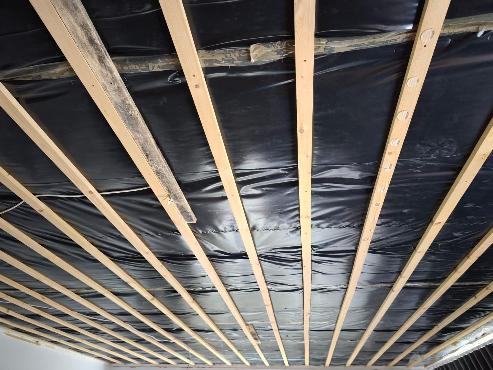Pind on nelinurkne ~36m2. Lagi on kaldega - madalaim kõrgus 2.4m, kõrgeim 3.4m. Vaja oleks lõigata paneeli ka kubu ventilatsiooni ava ⌀125mm.