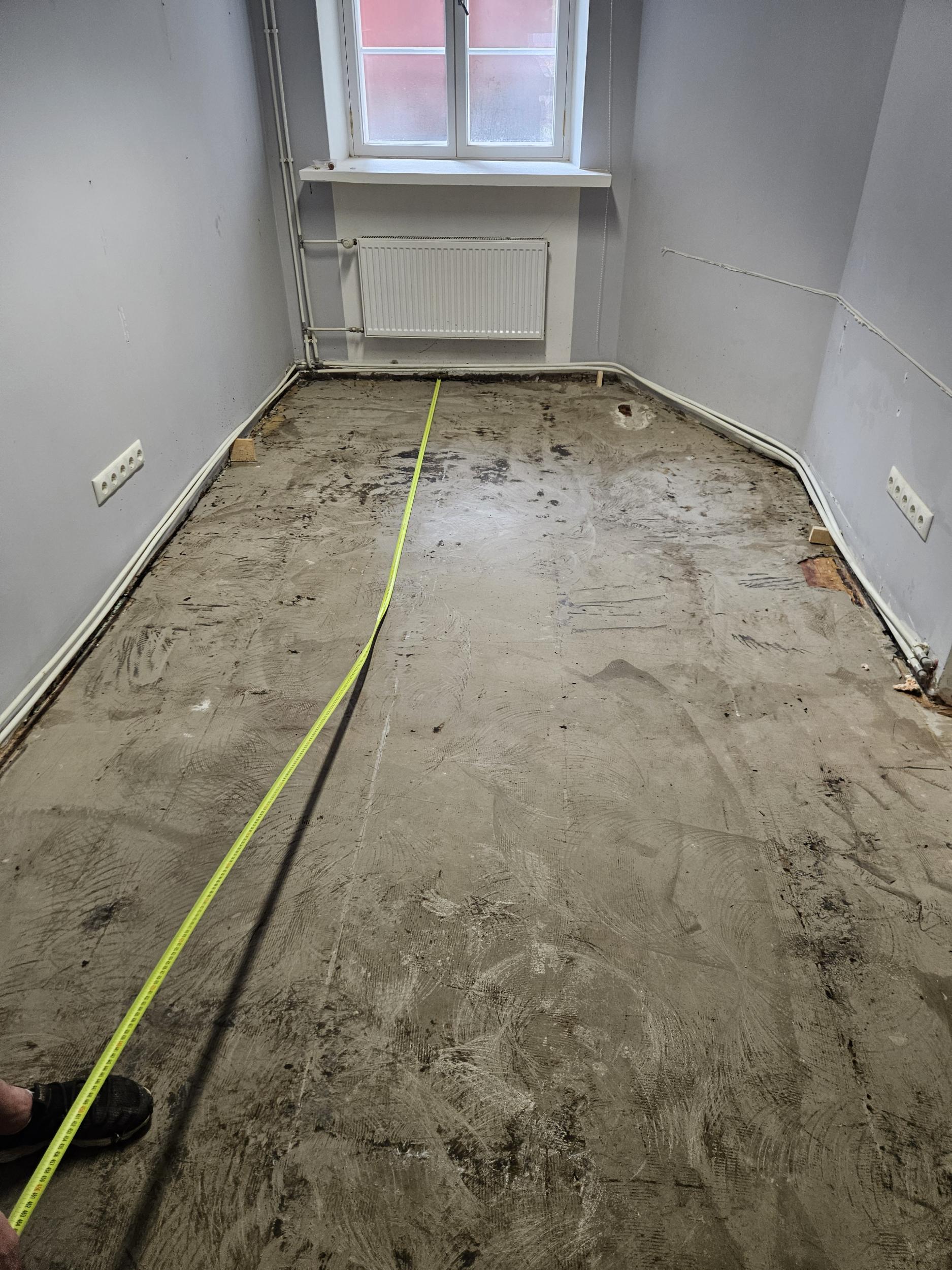Põranda keskele paigaldatakse enne PVC katte paigaldamist pikklik trapp ja põrandale tehalse ka tasanduskiht.Pvc paigaldaja neid töid tegema ei pea .Ruumi mõõdud on 2600 × 5200 Pvc tuleb paigaldada servadest 10-15 cm ülestõstetega .