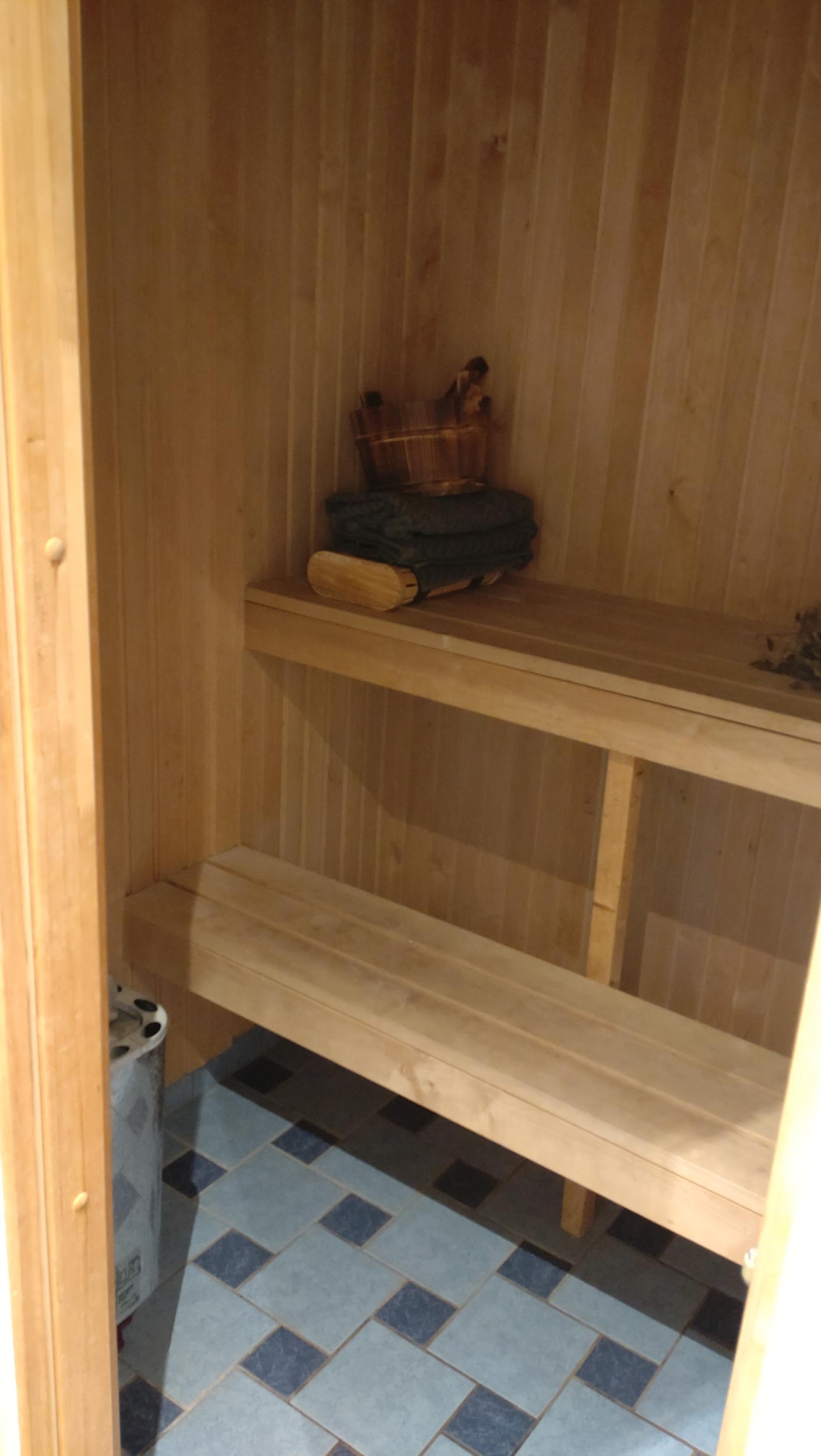 • Saun jääb samasse kohta, kuid läheb veidi väiksemaks. Tänane kips sein asendada klaasist seinaga. Sauna läheb uus tumedam laudis, lava ning uus valgustus. Uue ukse paigaldus. Uue kerise paigaldus.