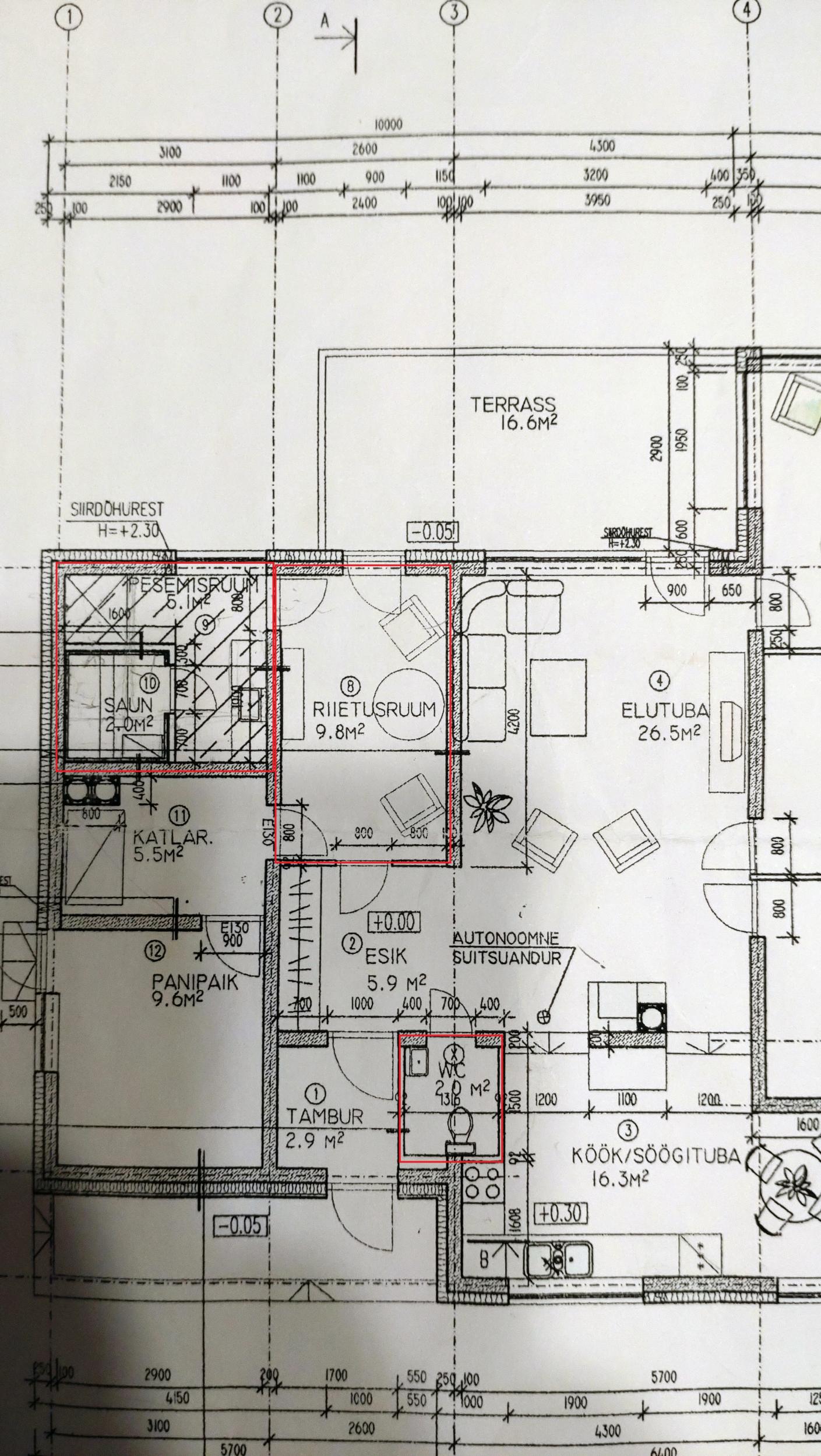 Keraamilised plaadid, sanitaartehnika, valamud, mööbel, sauna keris, klaaslahendused, valgustid, pistikud ning vinüülparkett on töö tellija poolt.